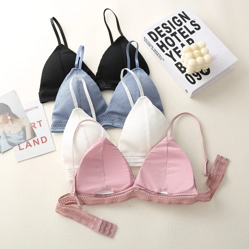 Women's Cotton Push-Up Bralette Solid Color Bras Seamless Wire-Free Brassiere Sexy Lingerie Simple Underwear for Female Girls