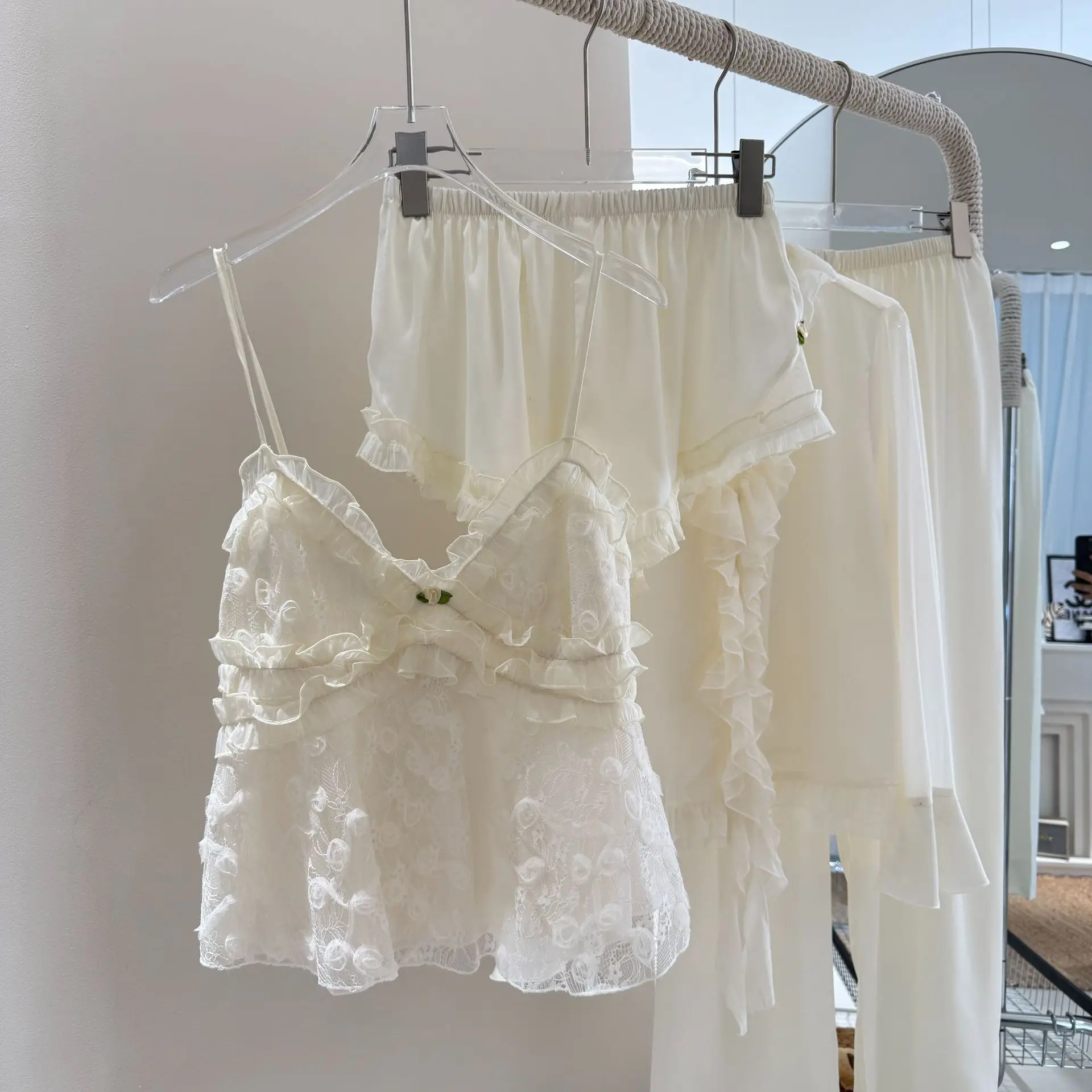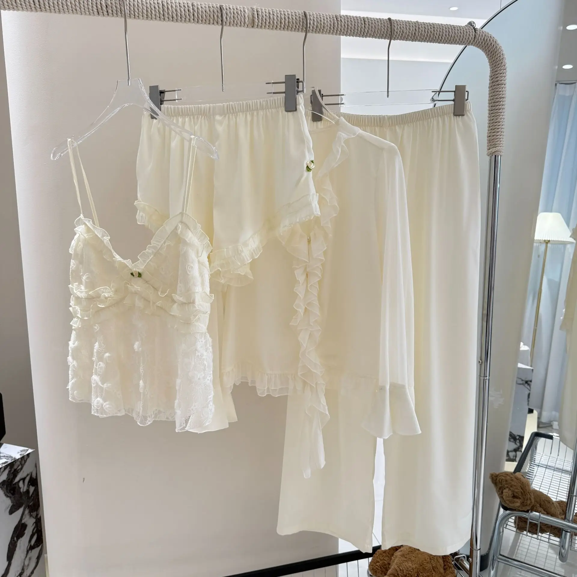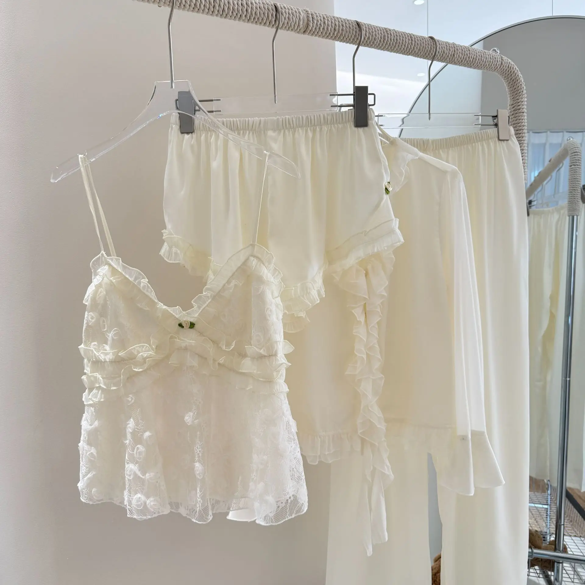 Female Silky Satin 4PCS Home Clothes Sexy Pajamas Suit Princess Sleepwear Palace Style Nightwear Summer New Nightgown Loungewear