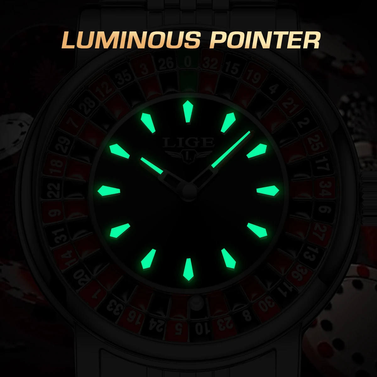 LIGE Fashion Men Watch Rotating Dial Las Vegas Roulette Desktop Theme Watch Men Waterproof Luminous Clock Watches Creative Clock