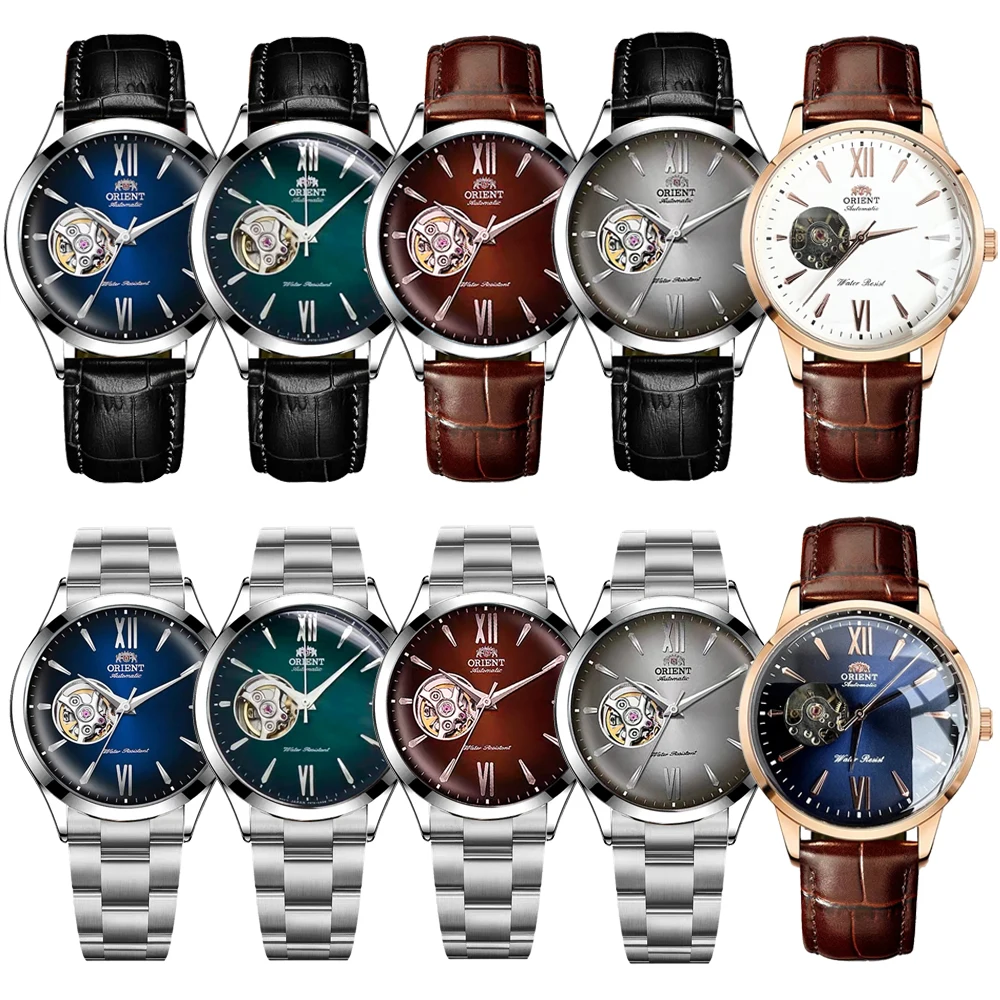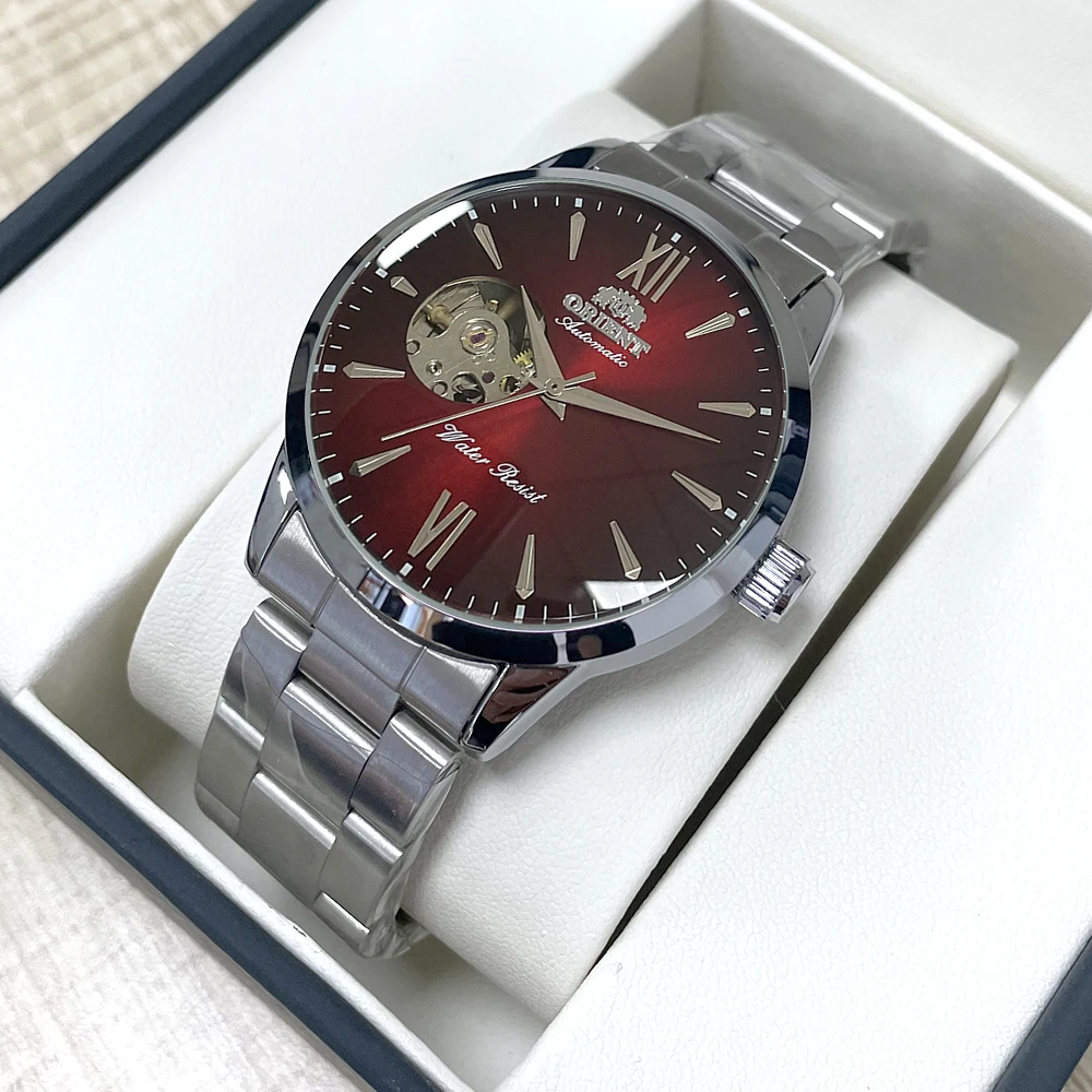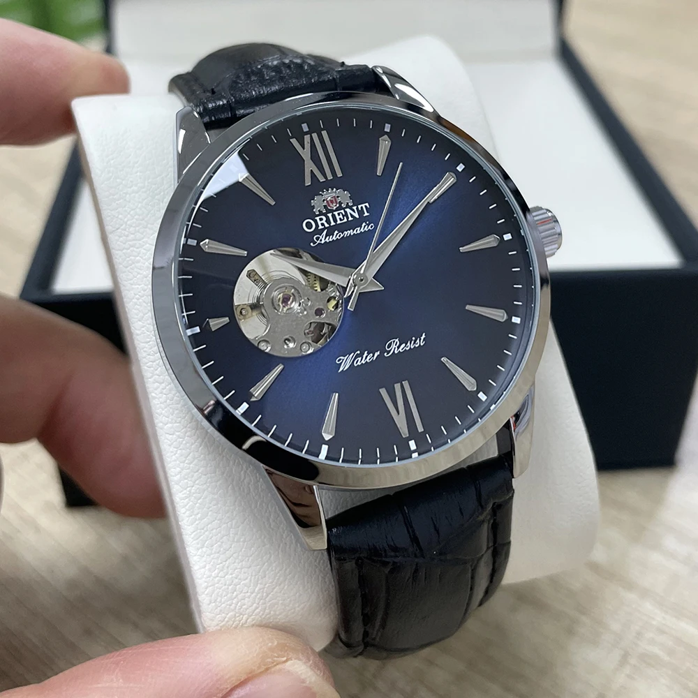 Orient Men's Automatic Open Heart Watch Blue Dial Stainless Steel Band Casual Dress Wristwatch 30M Water Resistant Fashion Watch