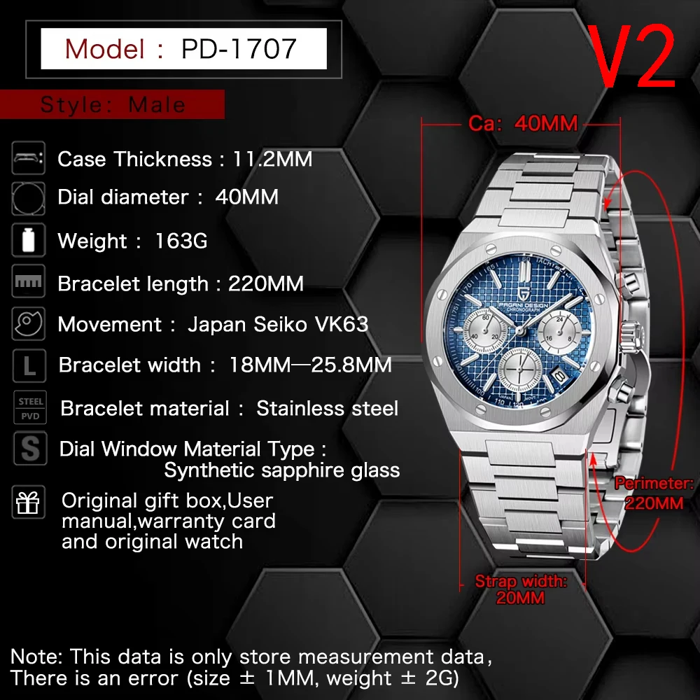 Pagani Design 2026 New Vk63 Fashionable Men V2 Quartz Chronograph Luxury Sapphire Stainless Steel Waterproof Sport 20Bar Luminou