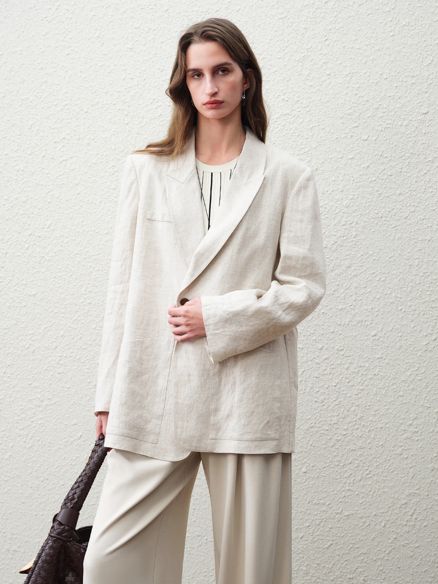 FSLE 2026 Spring Women's 100% Linen Blazer - Relaxed Fit Unstructured Overshirt for Office and Casual Wear