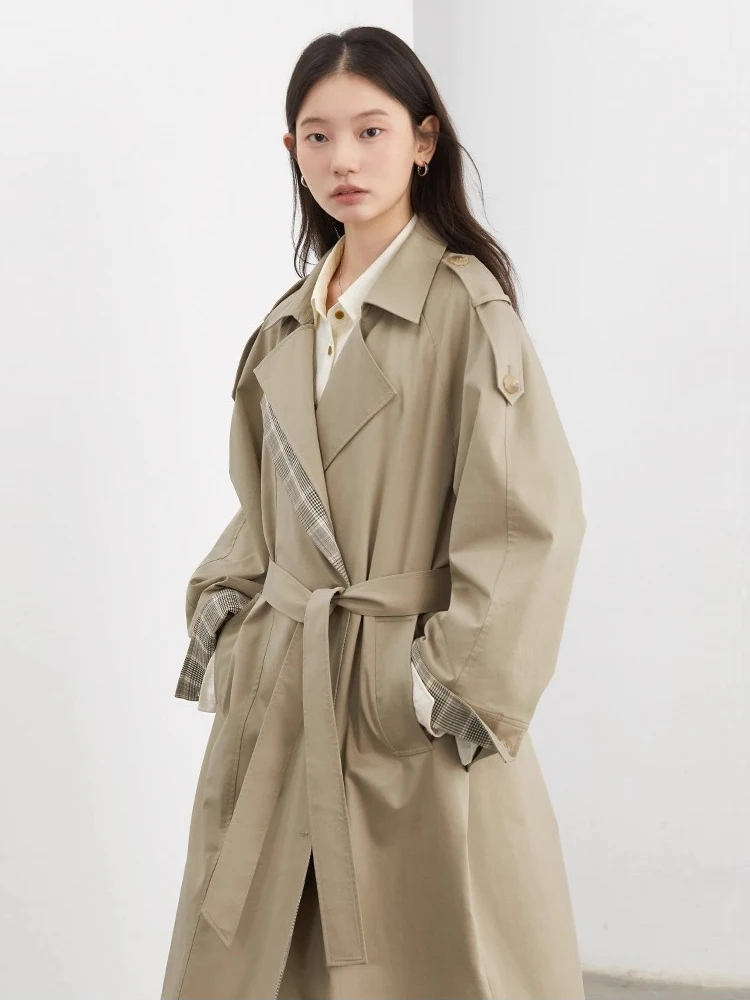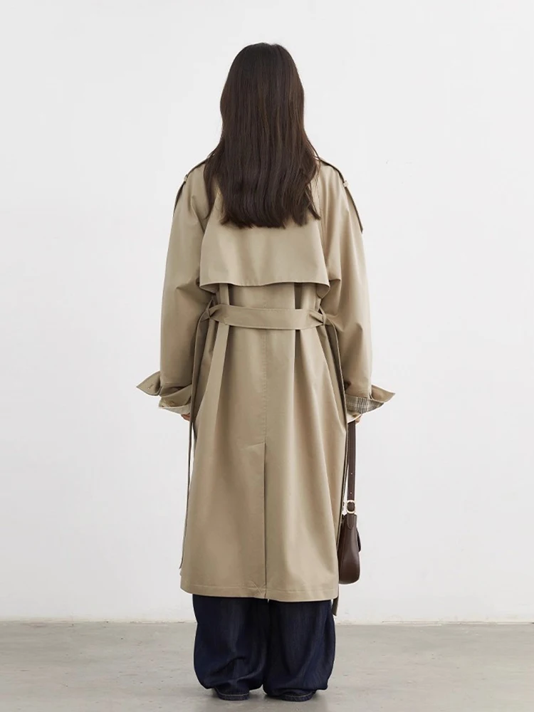 CHIC VEN Women Long Trench Coat Loose Casual New Plaid Patchwork Female Windbreaker Office Ladies Outerwear Spring Autumn 2025