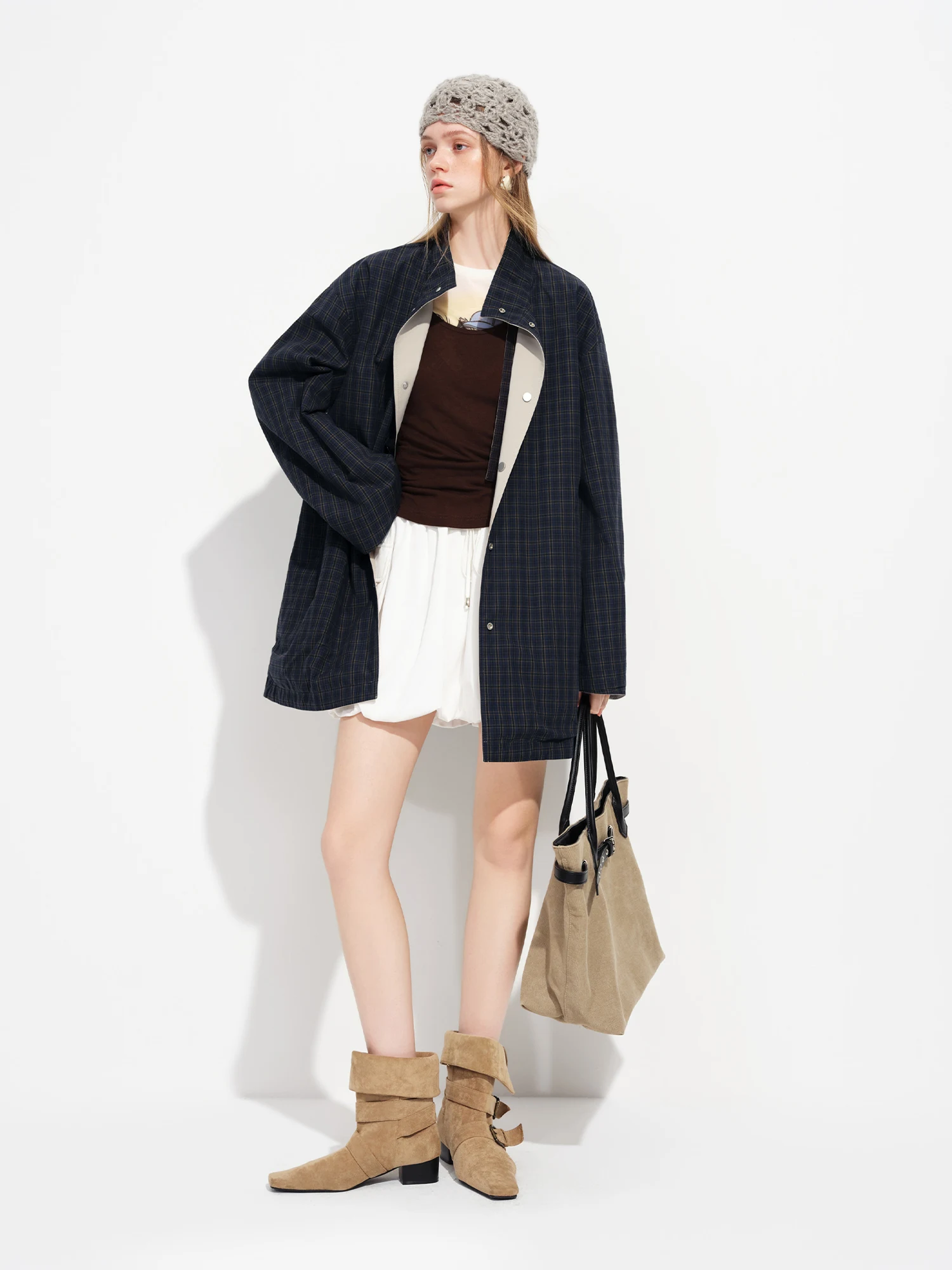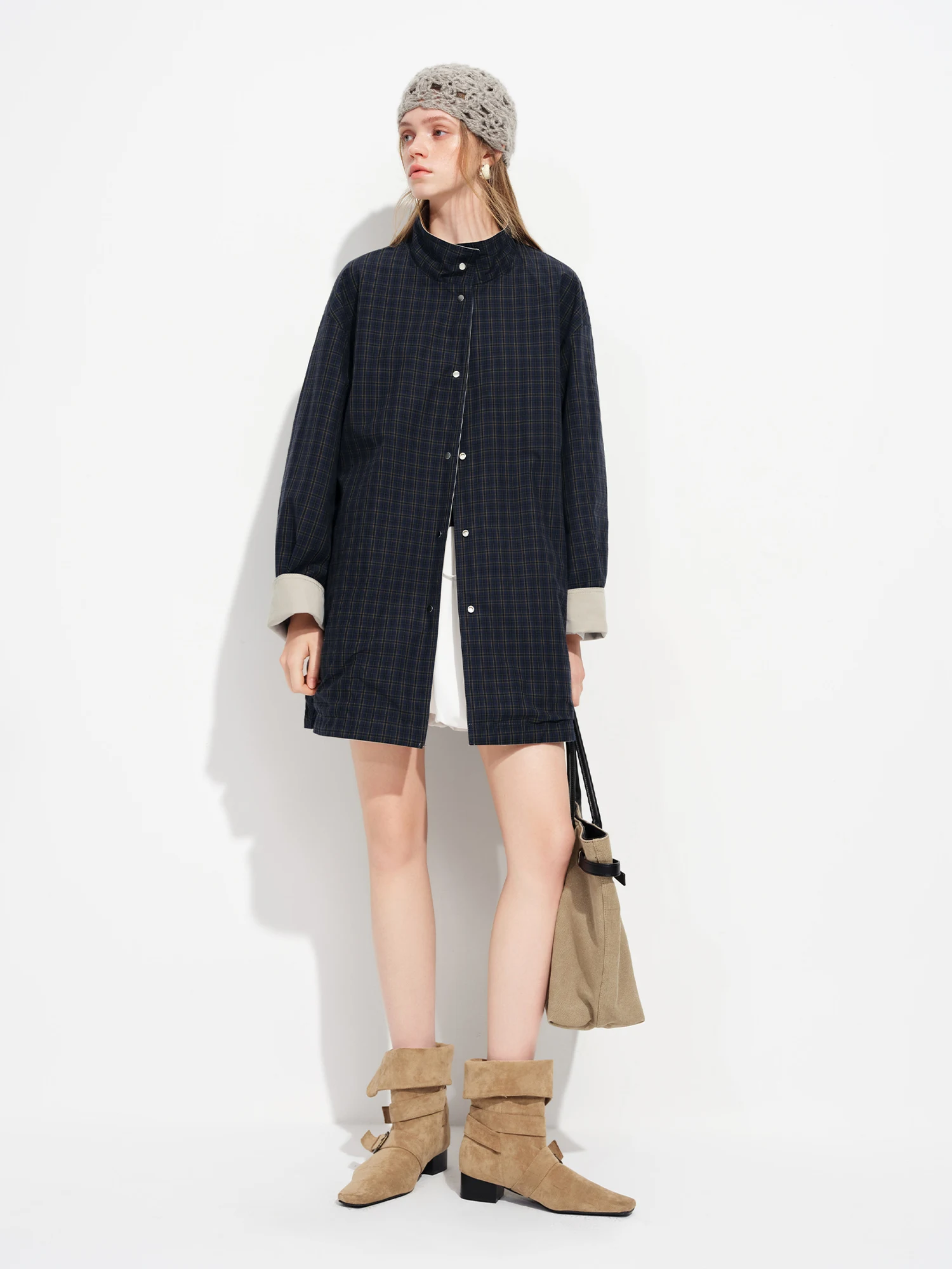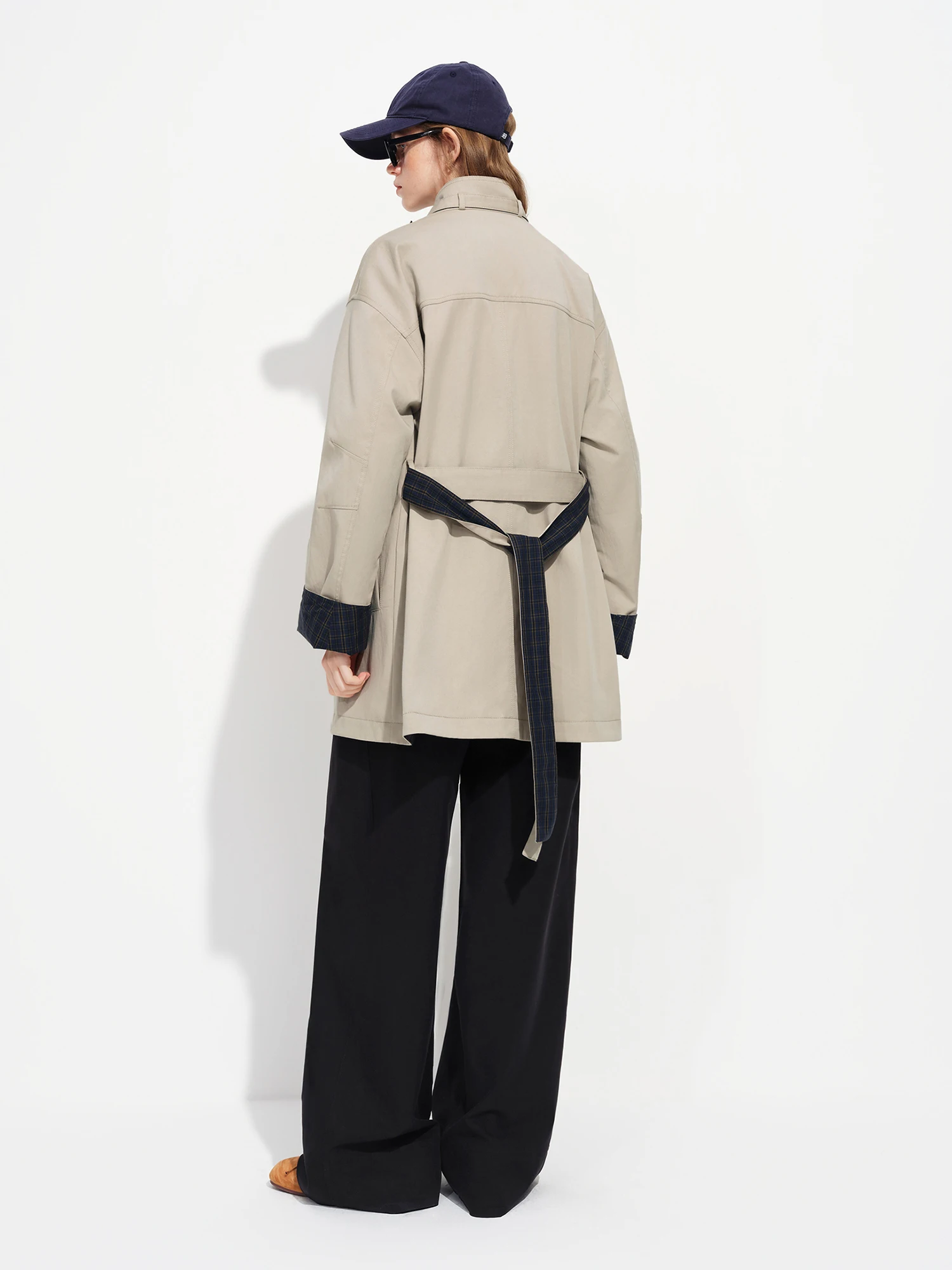 FSLE Classic Versatile Short Trench Coat for Women New Spring 2026 Style Stand Collar Dropped Shoulders Relaxed Fit
