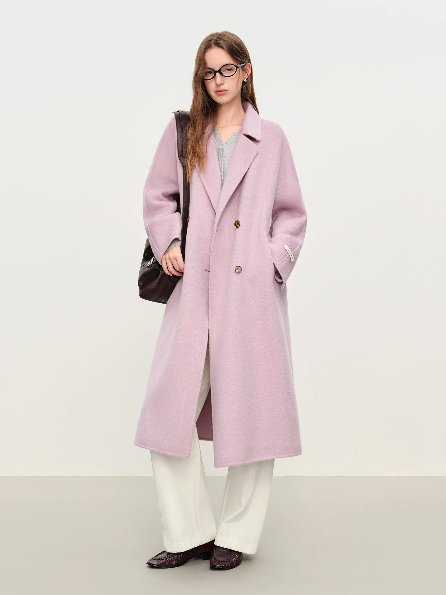 FSLE Elegant Double Breasted Camel Hair Wool Blend Double Sided Overcoat Women 2025 Winter Warm Long Coat Classic Outerwear