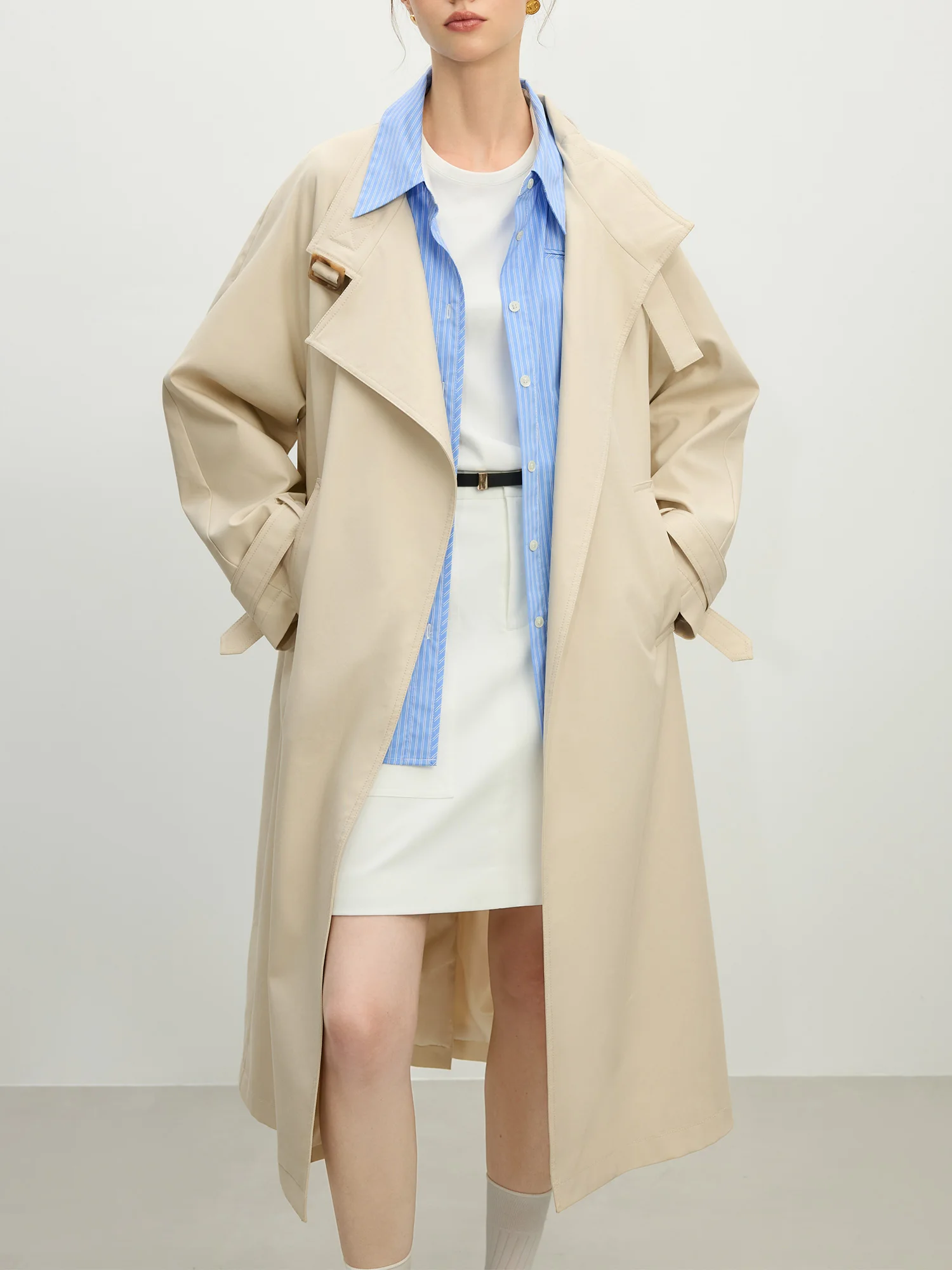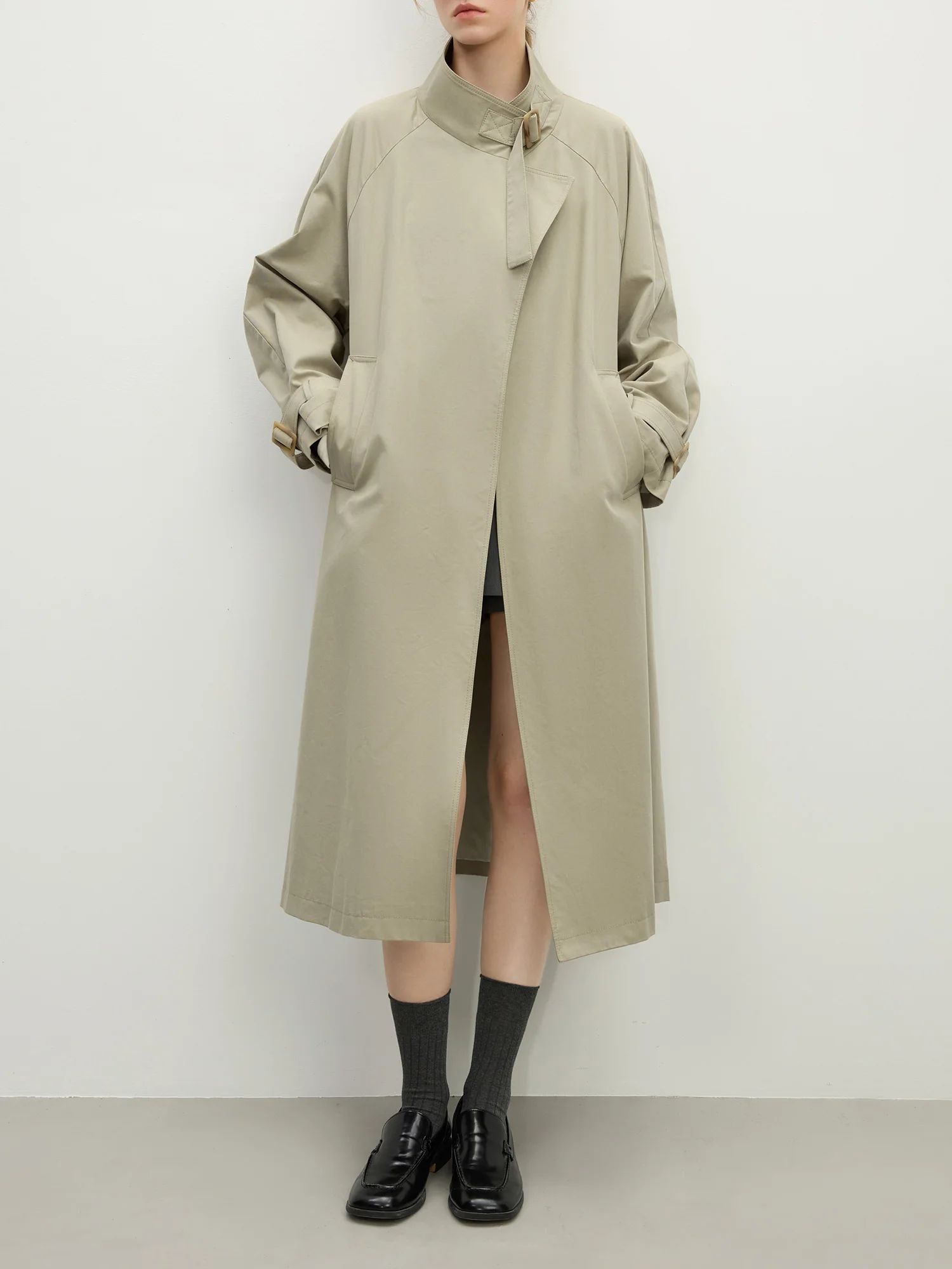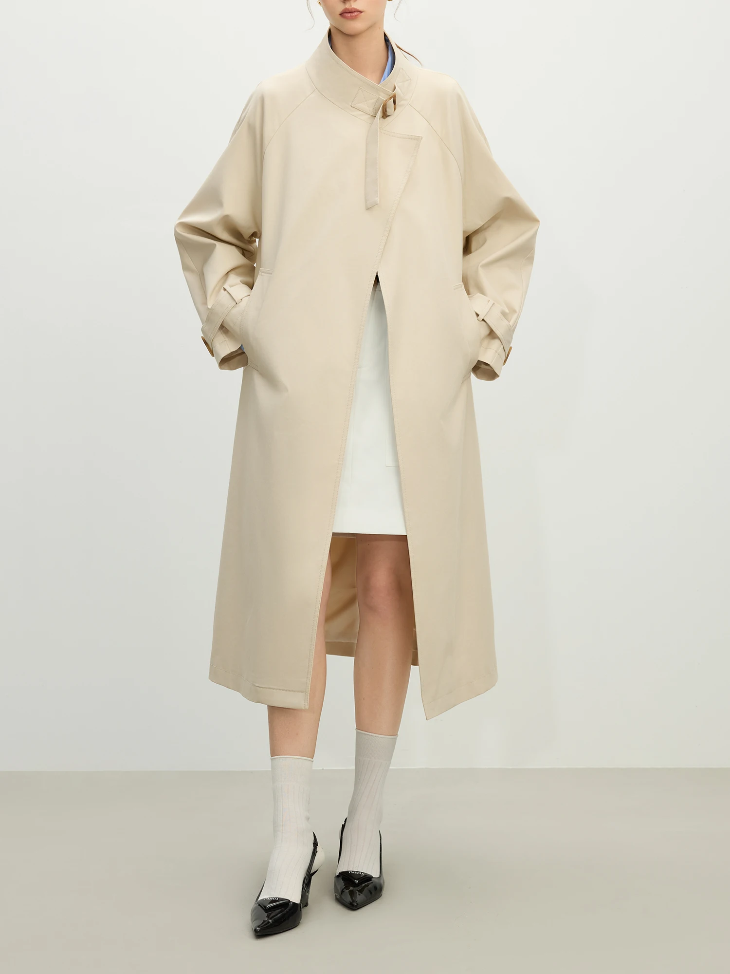 FSLE Office Lady Stand Up Collar Trench Coat for Women Spring of 2025 New Long Casual British Style Trench 25FS11276