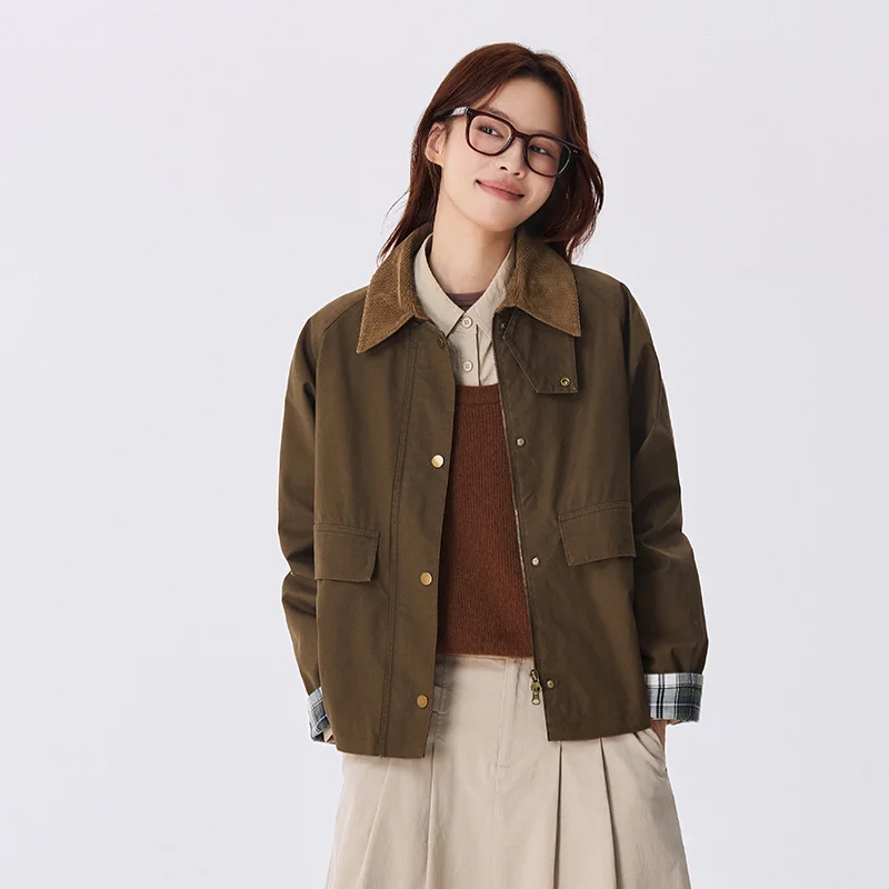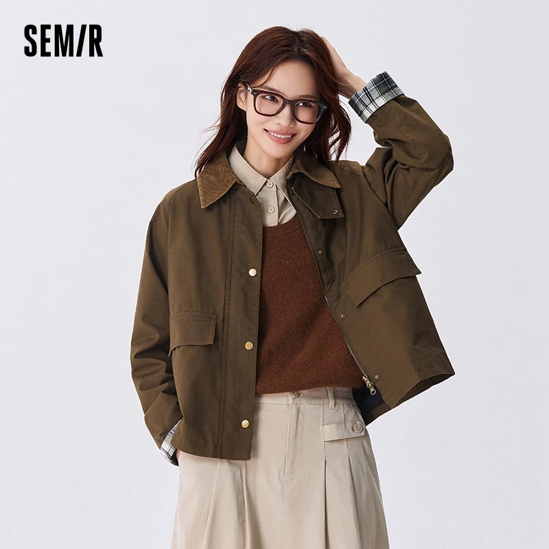 Semir Jacket Women Raglan Sleeve Stylish Loose 2025 New Autumn Patchwork Retro Chic Coat
