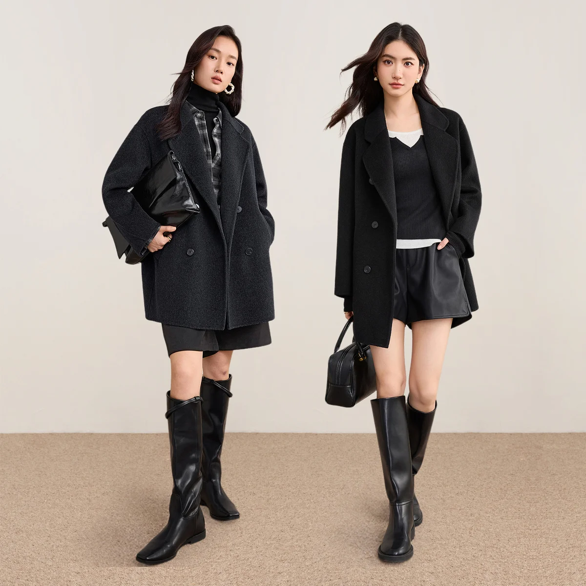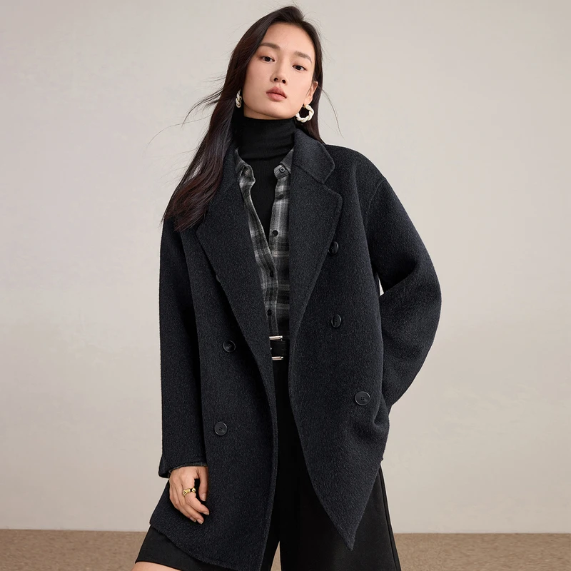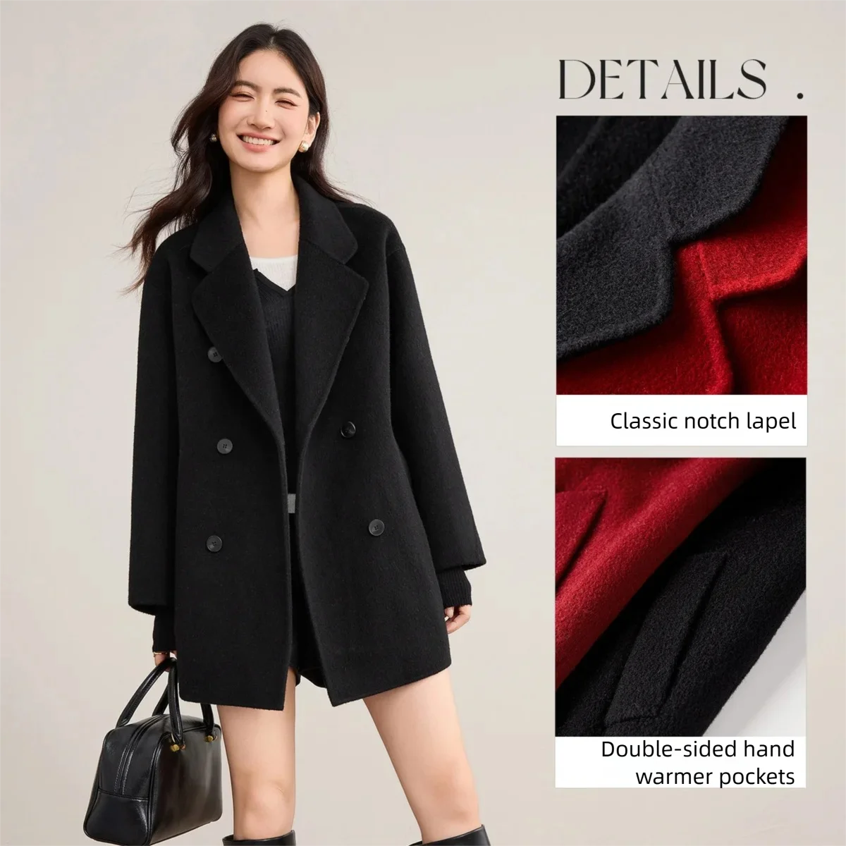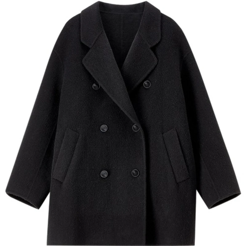 SENTUBILA Women's Double-Sided Wool Temperament Commuter Coat Winter 2026 Double-Breasted Loose Fit Versatile Coat W54OA8786