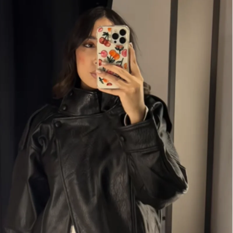 Women's Autumn Fashion Standing Collar Leather Jackets Windproof Loose Fold Coats Vintage Style High Street Outdoors Clothes