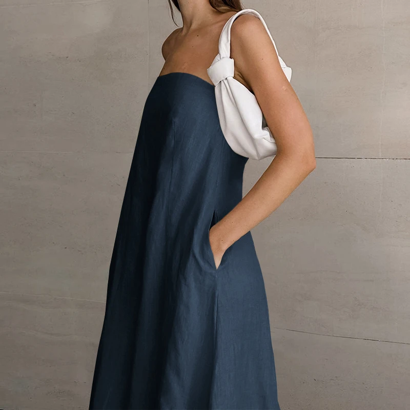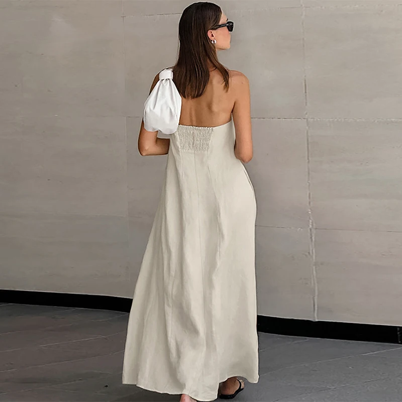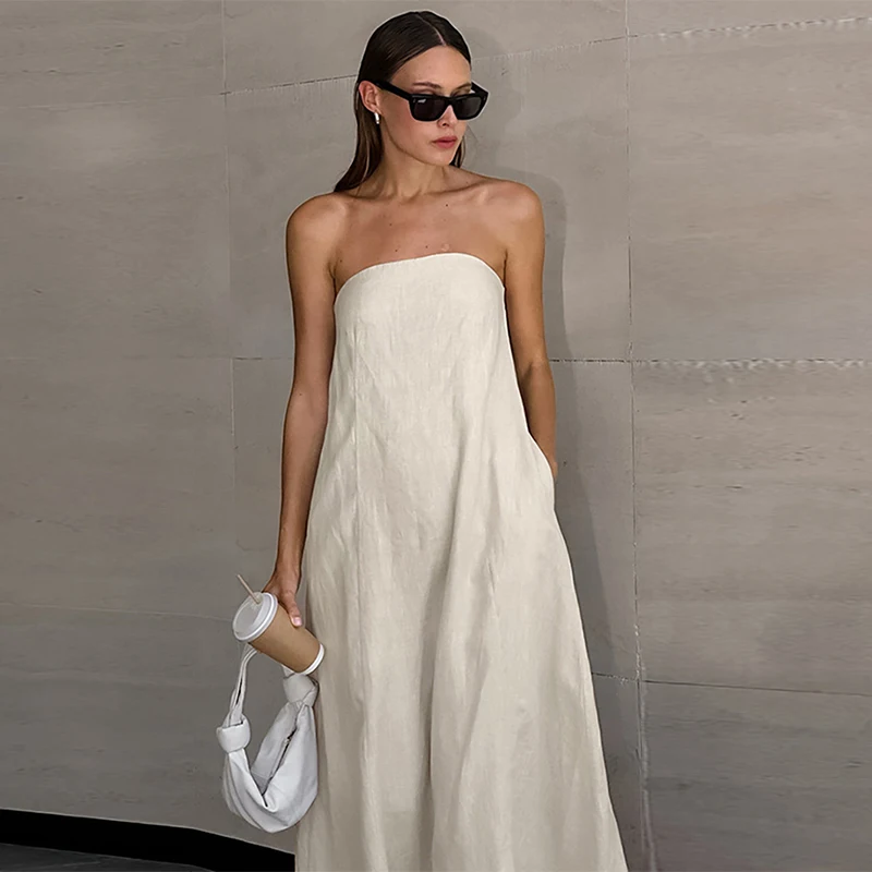 French-Style Women's Cotton-Linen Strapless Dress Chic New Solid Color Off-Shoulder Backless Sexy Casual Summer Dresses Vestido