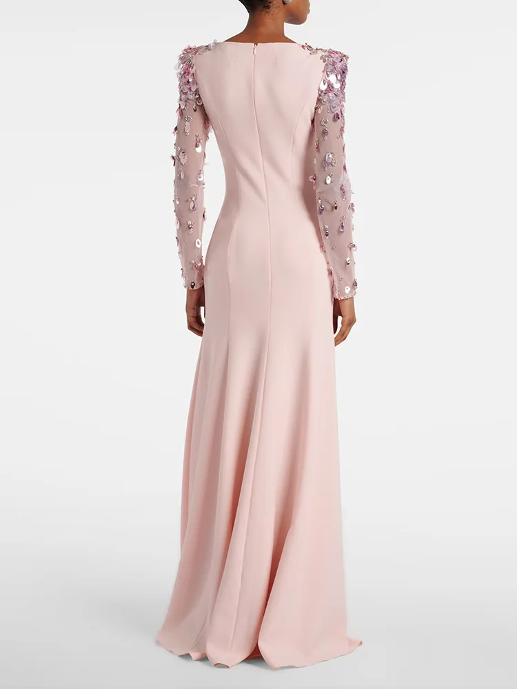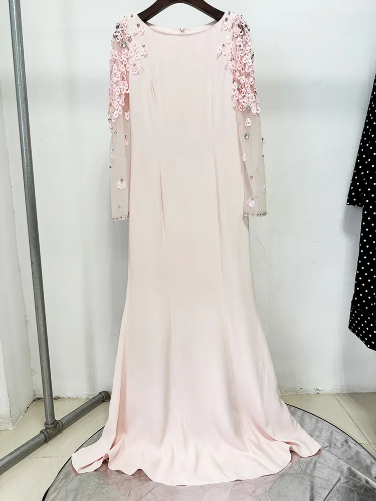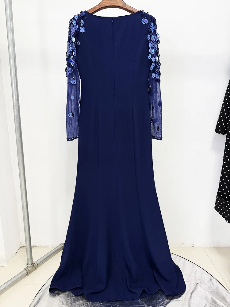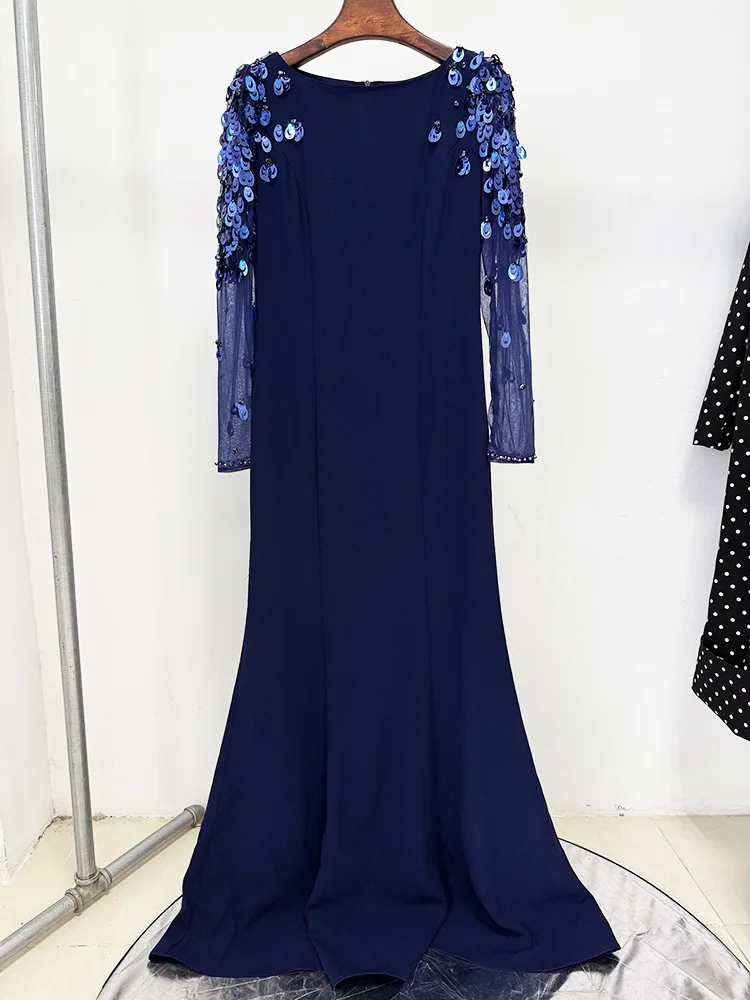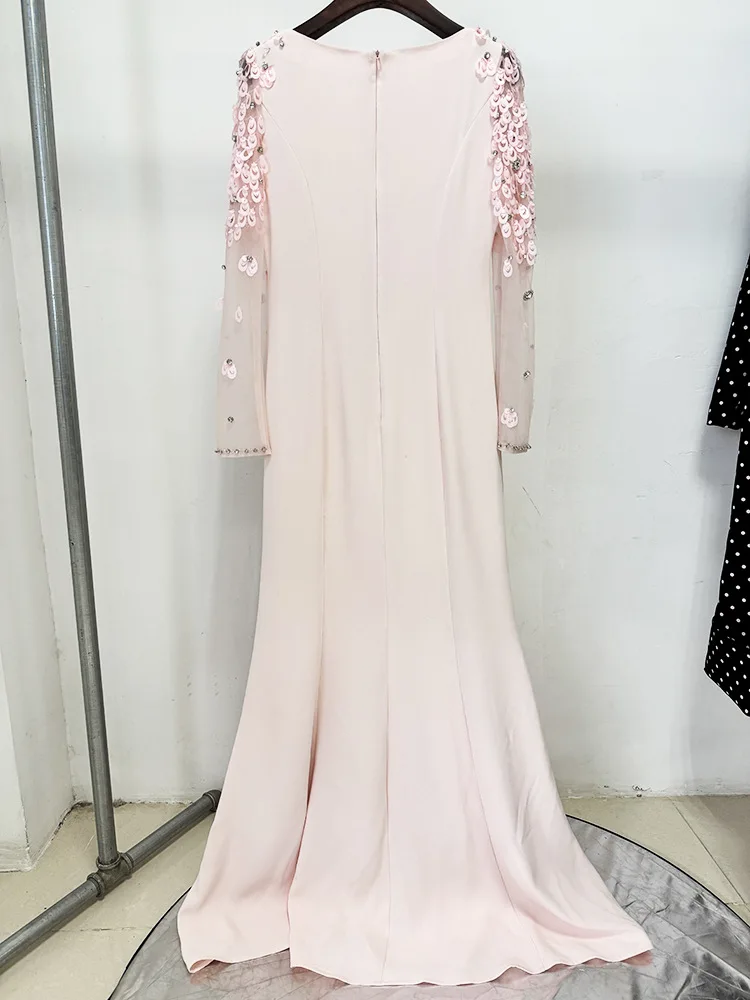 HIGH STREET Newest 2026 Designer Fashion Women's Spliced Mesh Diamonds Beaded Long Sleeved Floor Length Maxi Long Dress