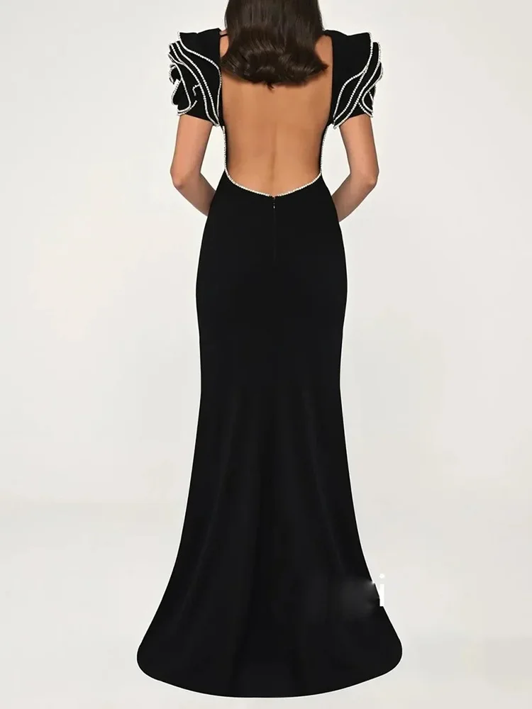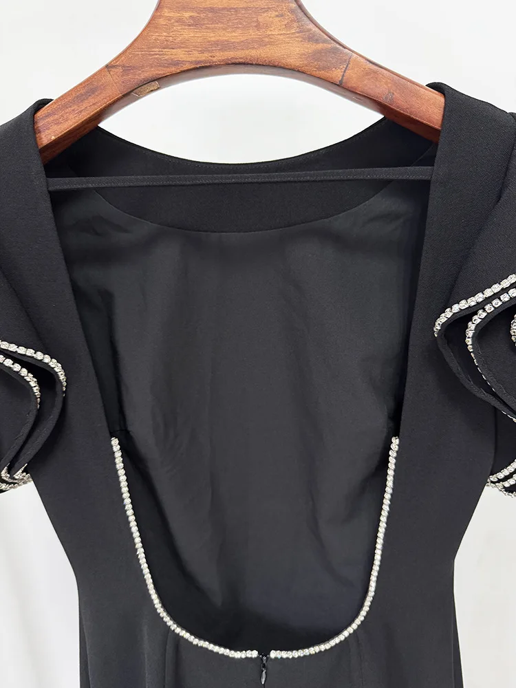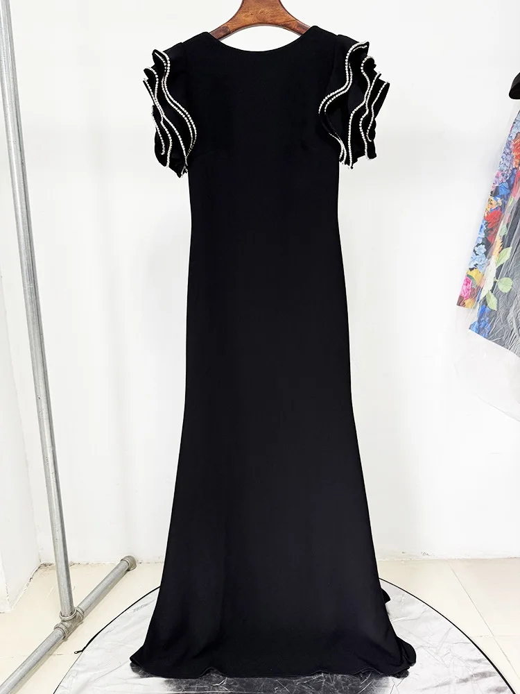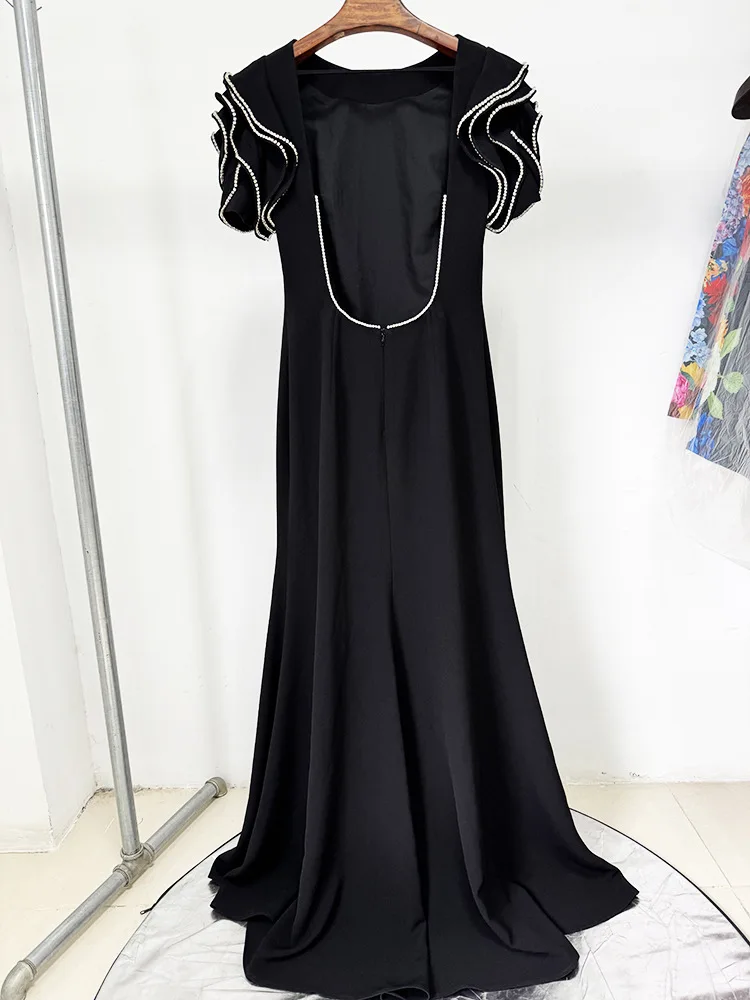 HIGH STREET Newest Fashion 2026 Designer Party Vestido Women's Diamonds Beading Lotus Leaf Sleeveless Backless Long Dress