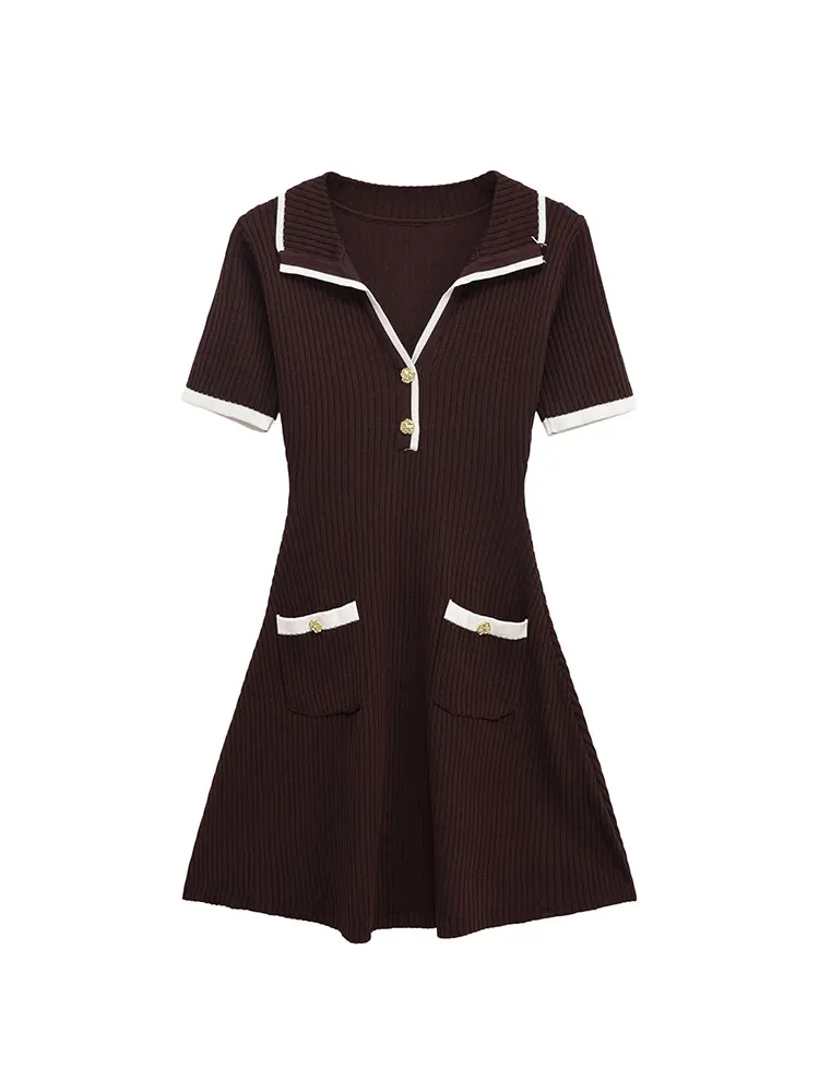 NLZGMSJ 2025 Autumn Casual Mini Dress Fashion Contrast Color Design Short Sleeve Dresses For Women Elegant Short Dress