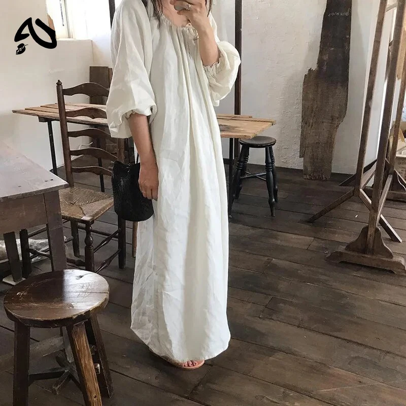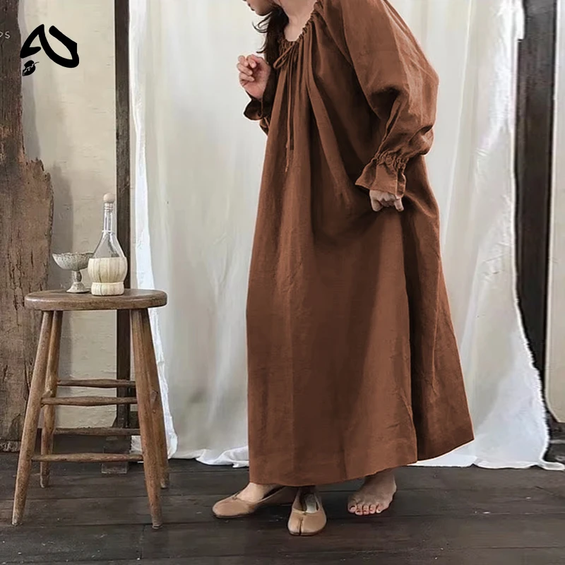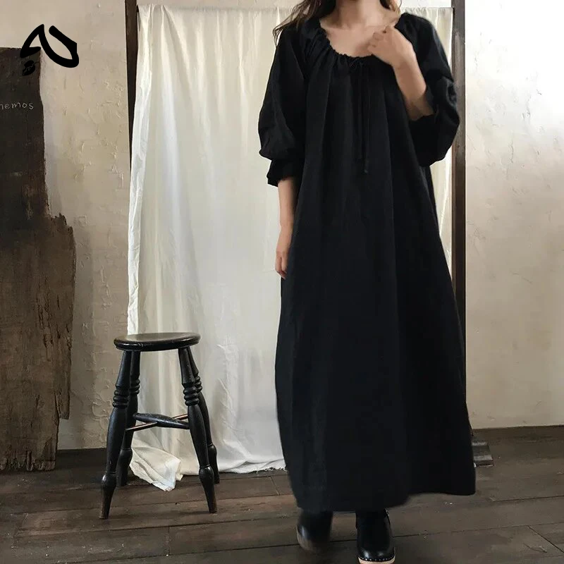 Original Vintage Cotton Linen Mori Dress Women's Casual One Piece Long Sleeve Maxi Dresses Mori Girl Large Ruffles Robe Clothes