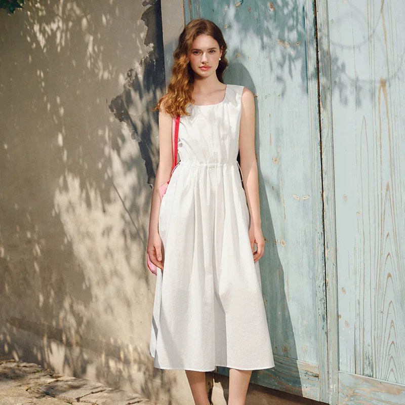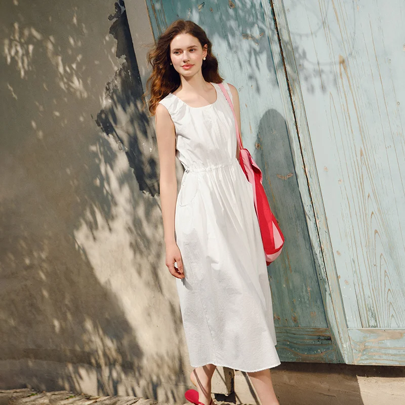 Semir Dress Women Solid Color Sleeveless Long Dress Casual Gentle Fashionable 2025 New Summer Vest Dress Elegant