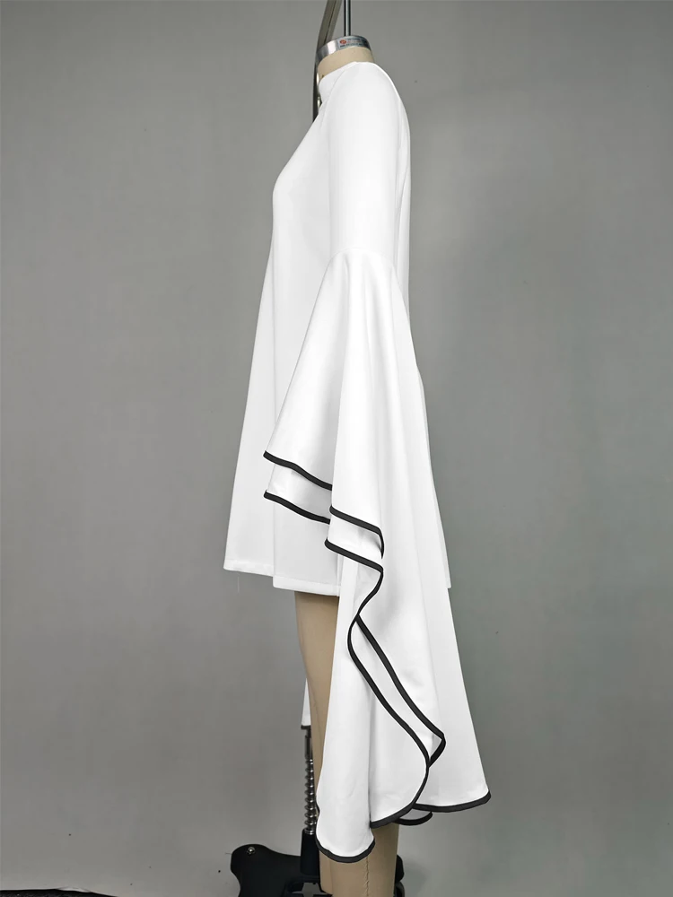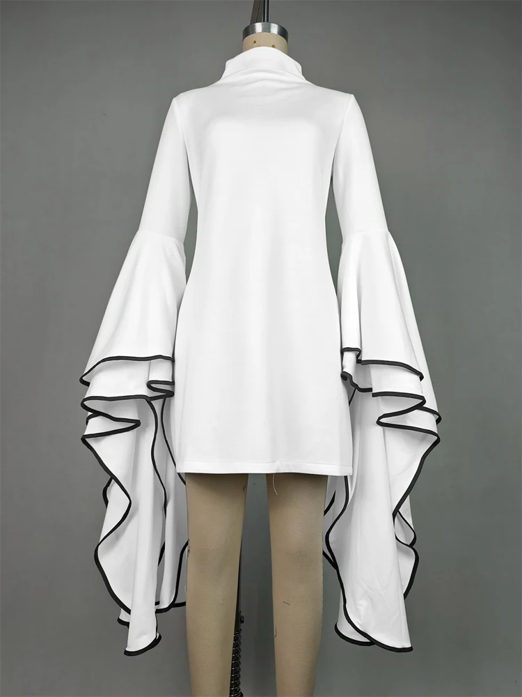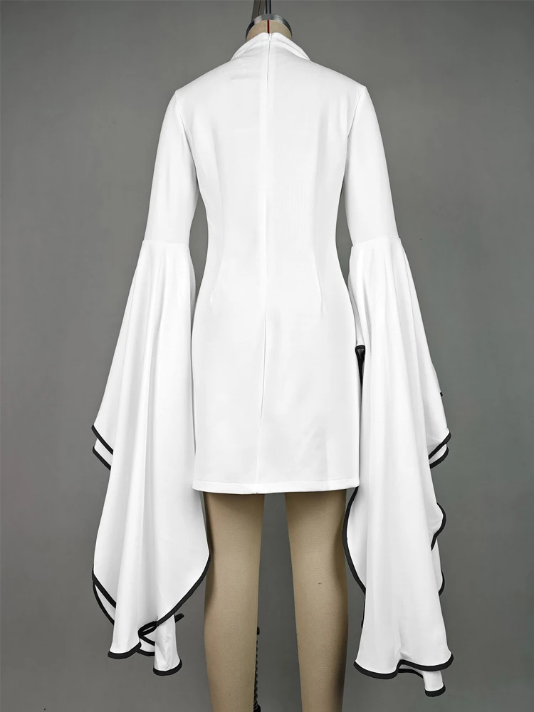 Women Fashion Elegant Flared Sleeves Party Evening Mini Dresses 2024 New Autumn Stand Collar Slim Fit White A-line Dress