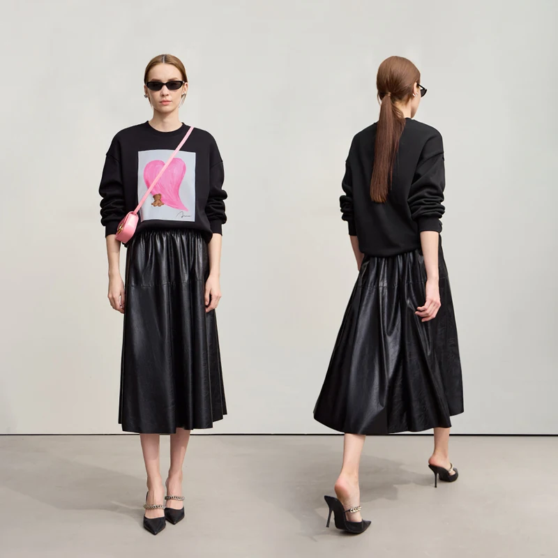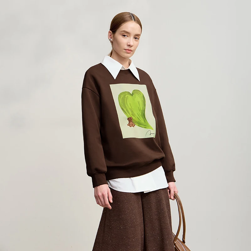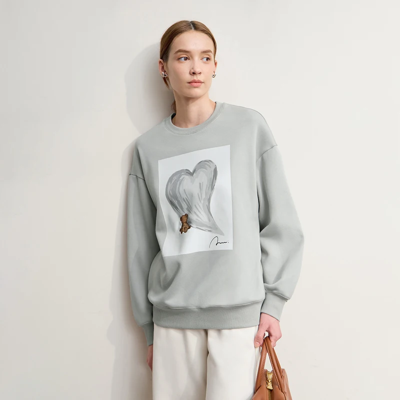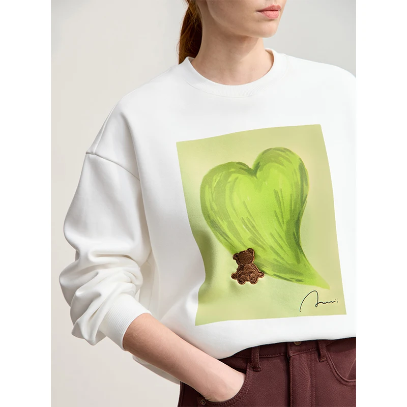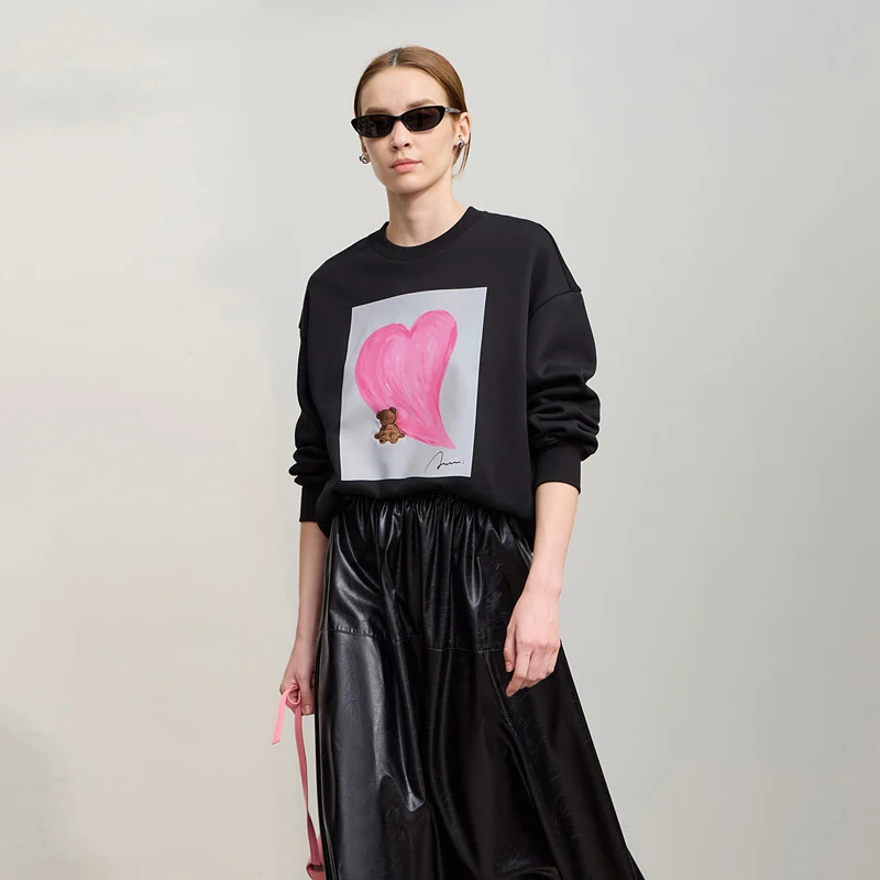 Amii Sweatshirt For Woman 2025 Winter New Printing Embroidered Casual Thick Crew Neck Long Sleeve Versatile Knit Tops 12524123