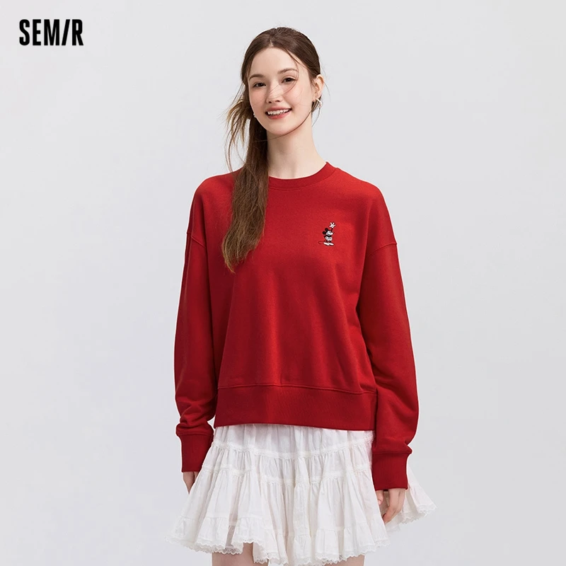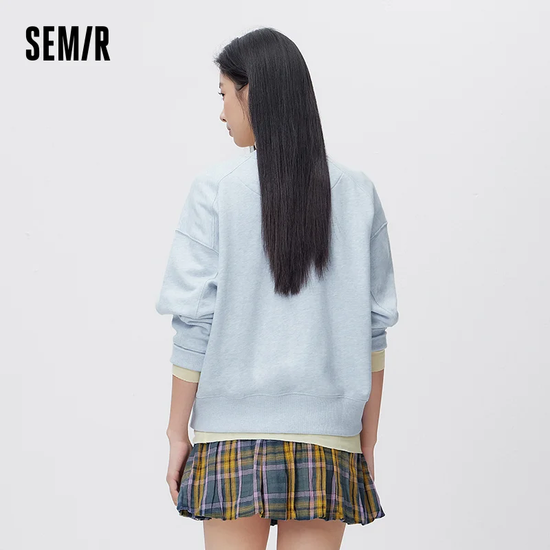 Semir Oversize Hoodie Women Spring Embroidered Split Basic Layer Trendy Pullover Casual Loose Comfortable Stylish Top