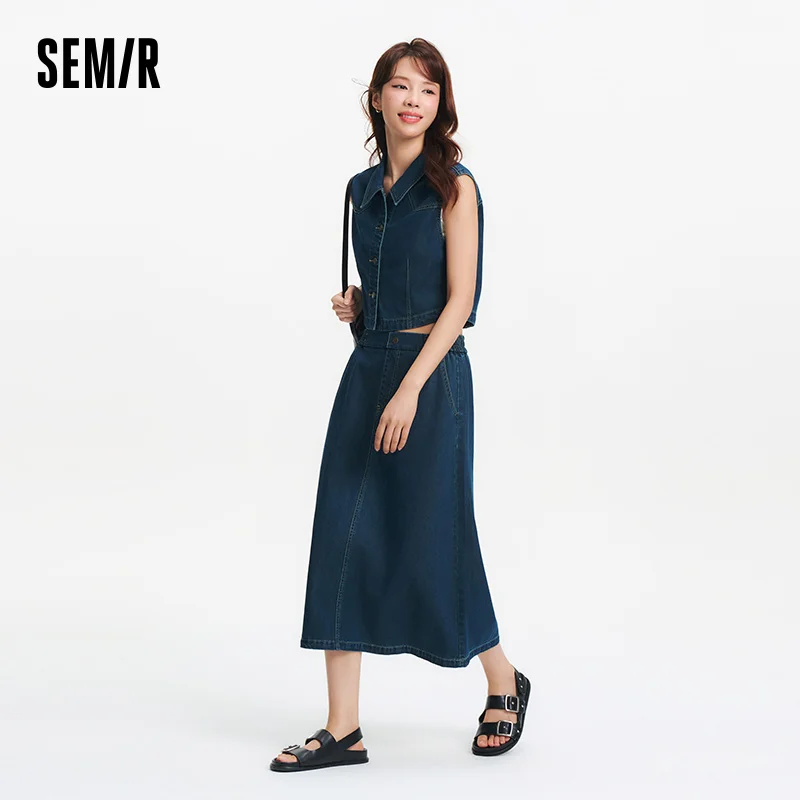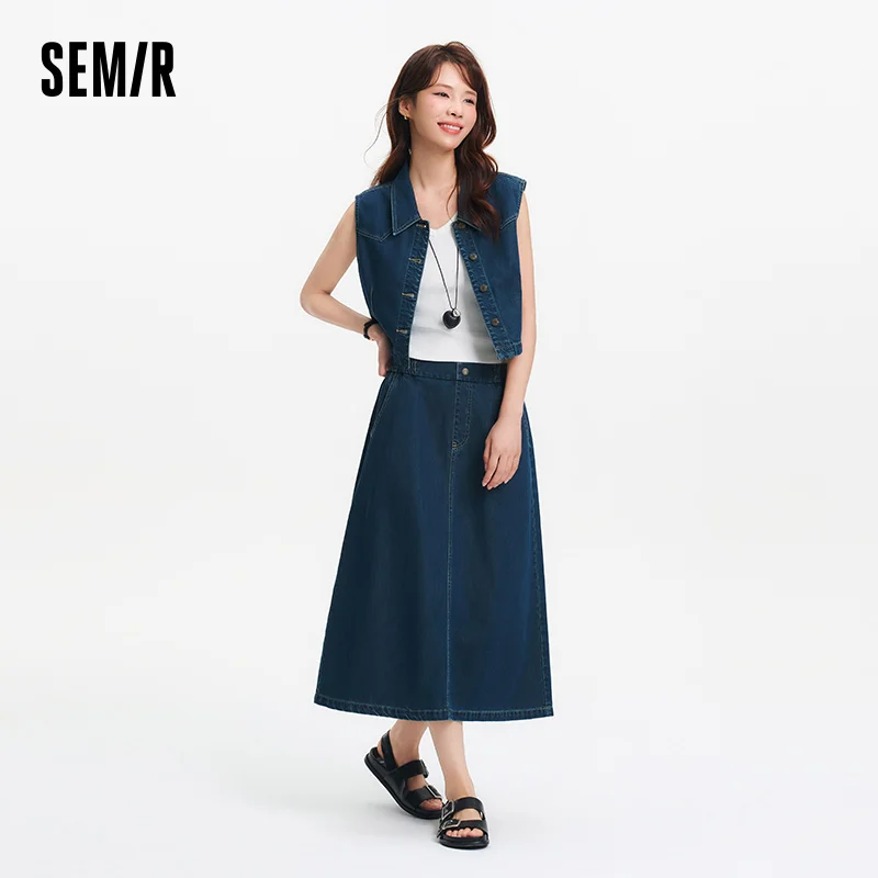 Semir Women Suits 2026 Sleeveless Retro Lapel Collar Shirts & Waist Cinched Urban Casual Skirt Set Everyday Style Soft Daily