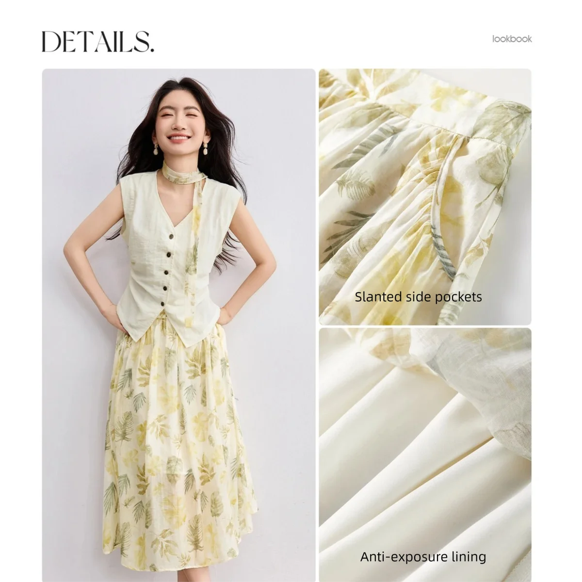 SENTUBILA Elegant Skirt Holiday Set Woman 2 Pieces V-neck Waistcoat Printing Midi Pockets Skirts Ladies Two Piece Sets W52ZA2256