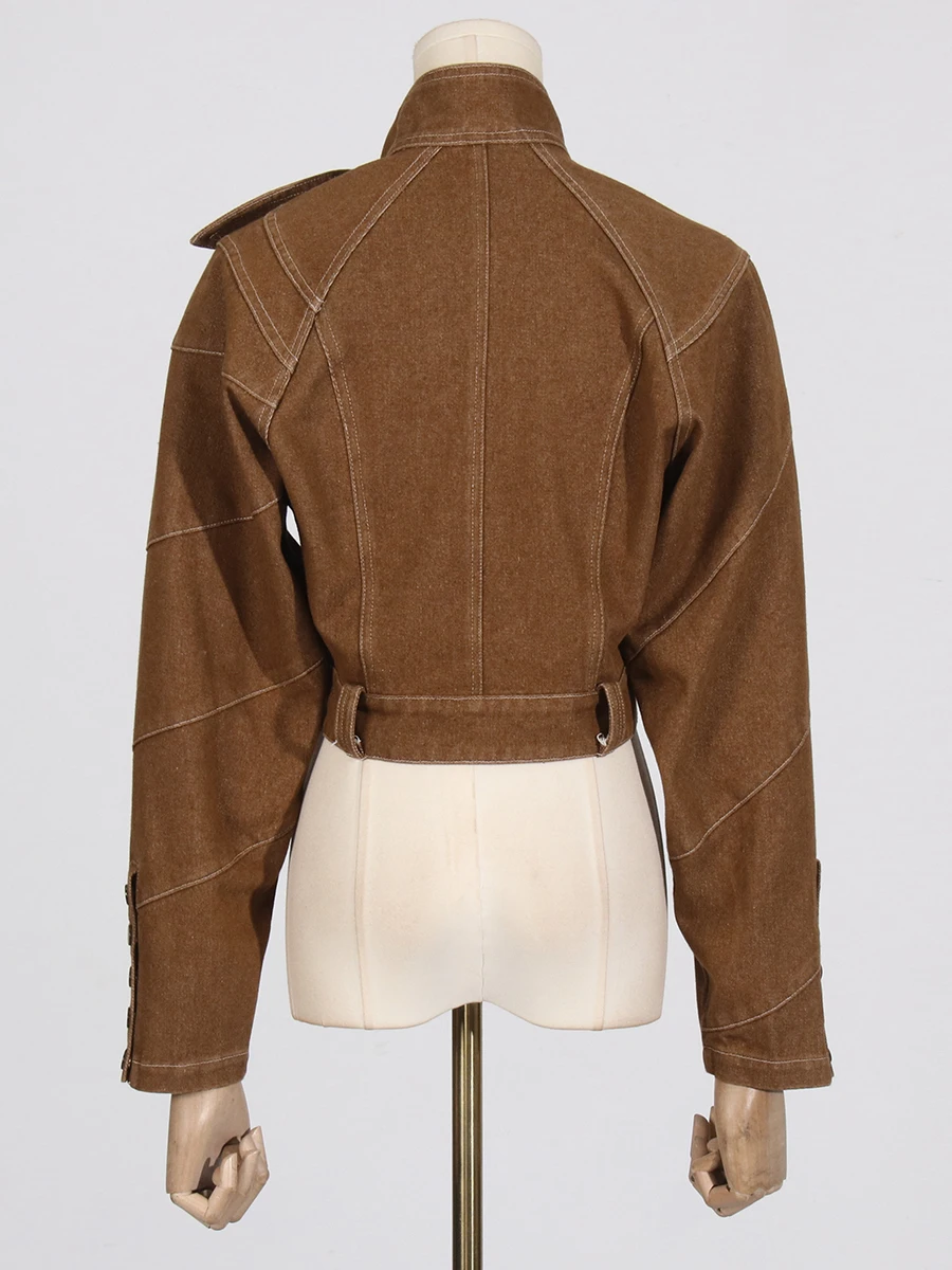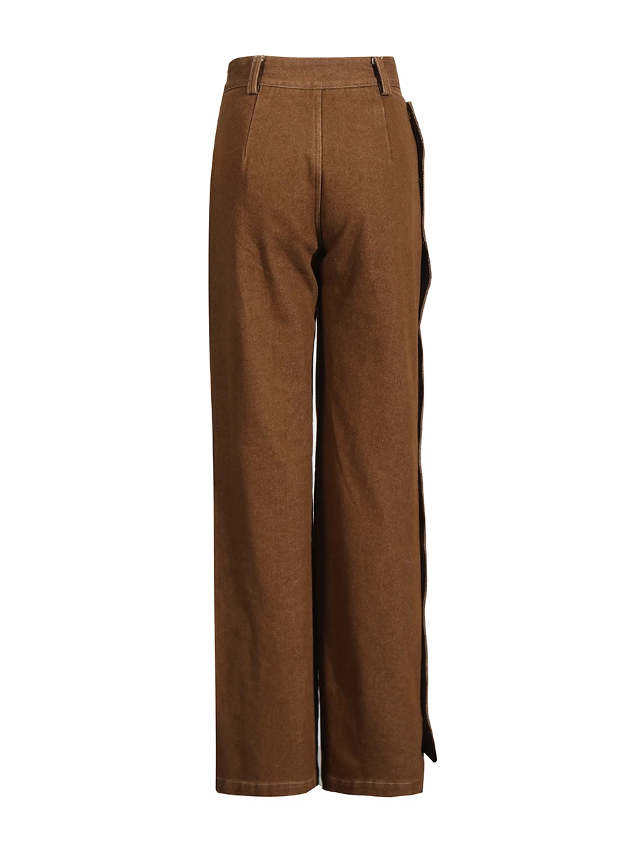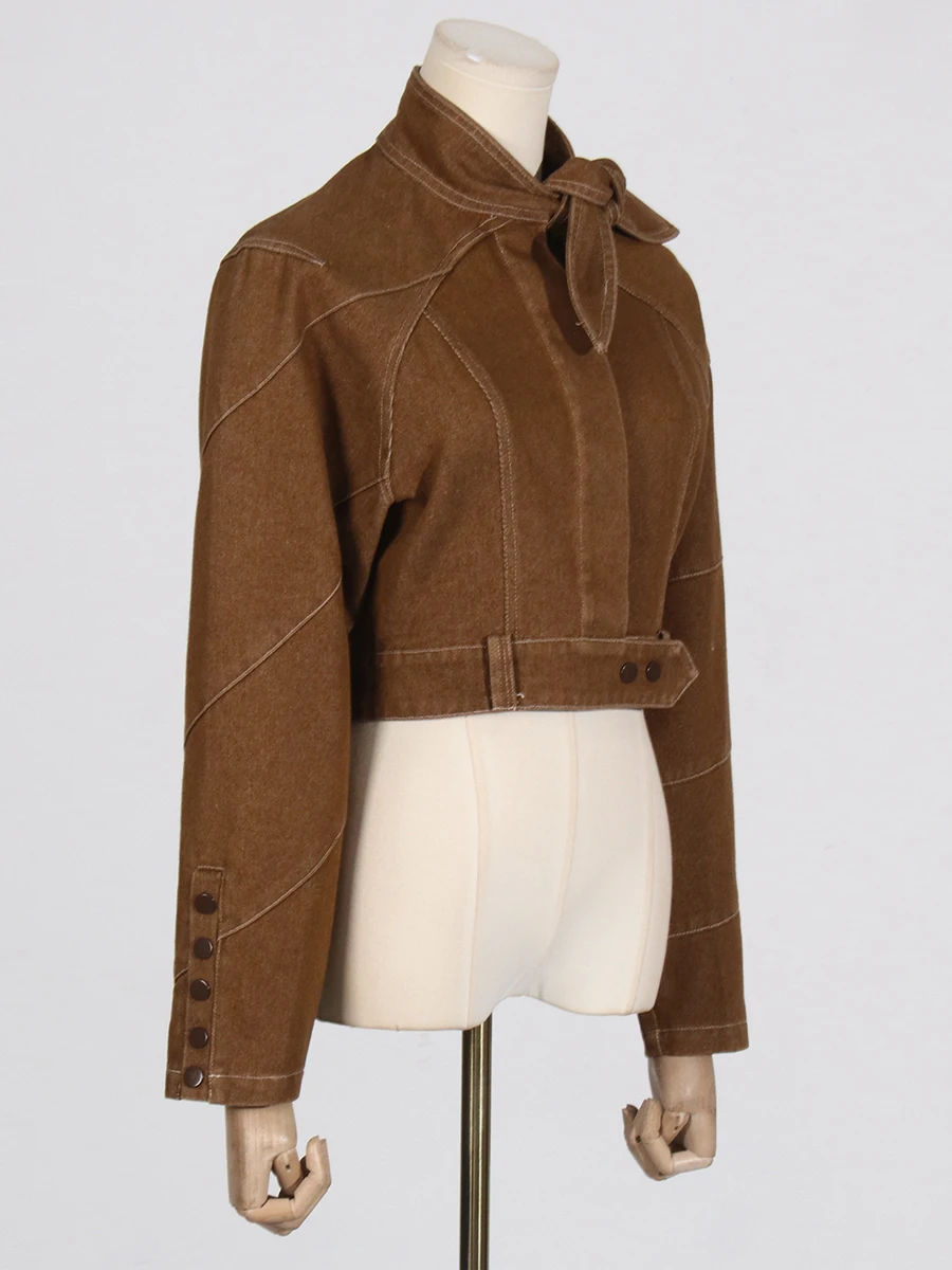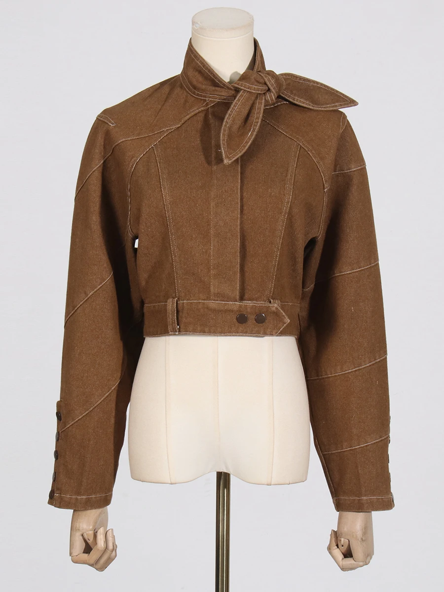 VGH Fashion 2 Piece Set for Women Stand Neck Long Sleeve Spliced Bow Top High Waist Patchwork Button Pant Suit Female Autumn New