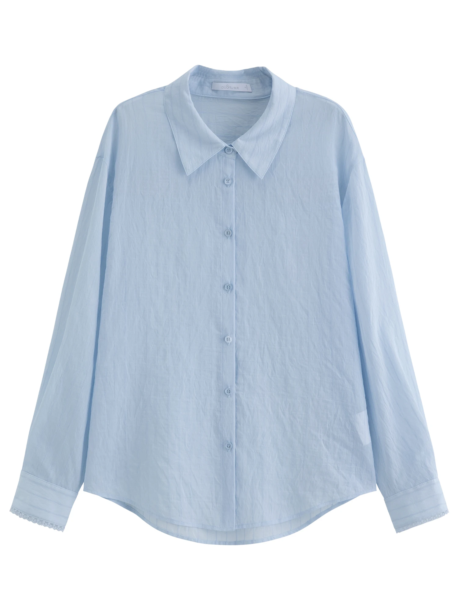 DUSHU 2026 Summer Women‘s Lace Trim Sun Protection Shirt Lightweight Long Sleeve Blouse Versatile Office Casual Style Soft Top