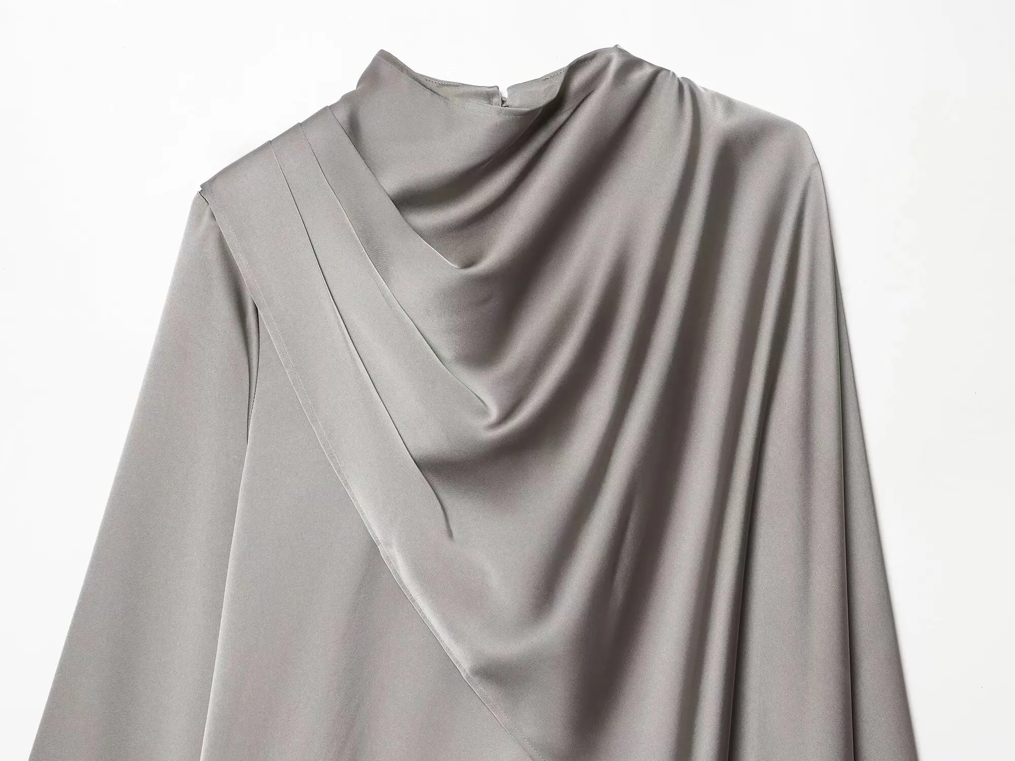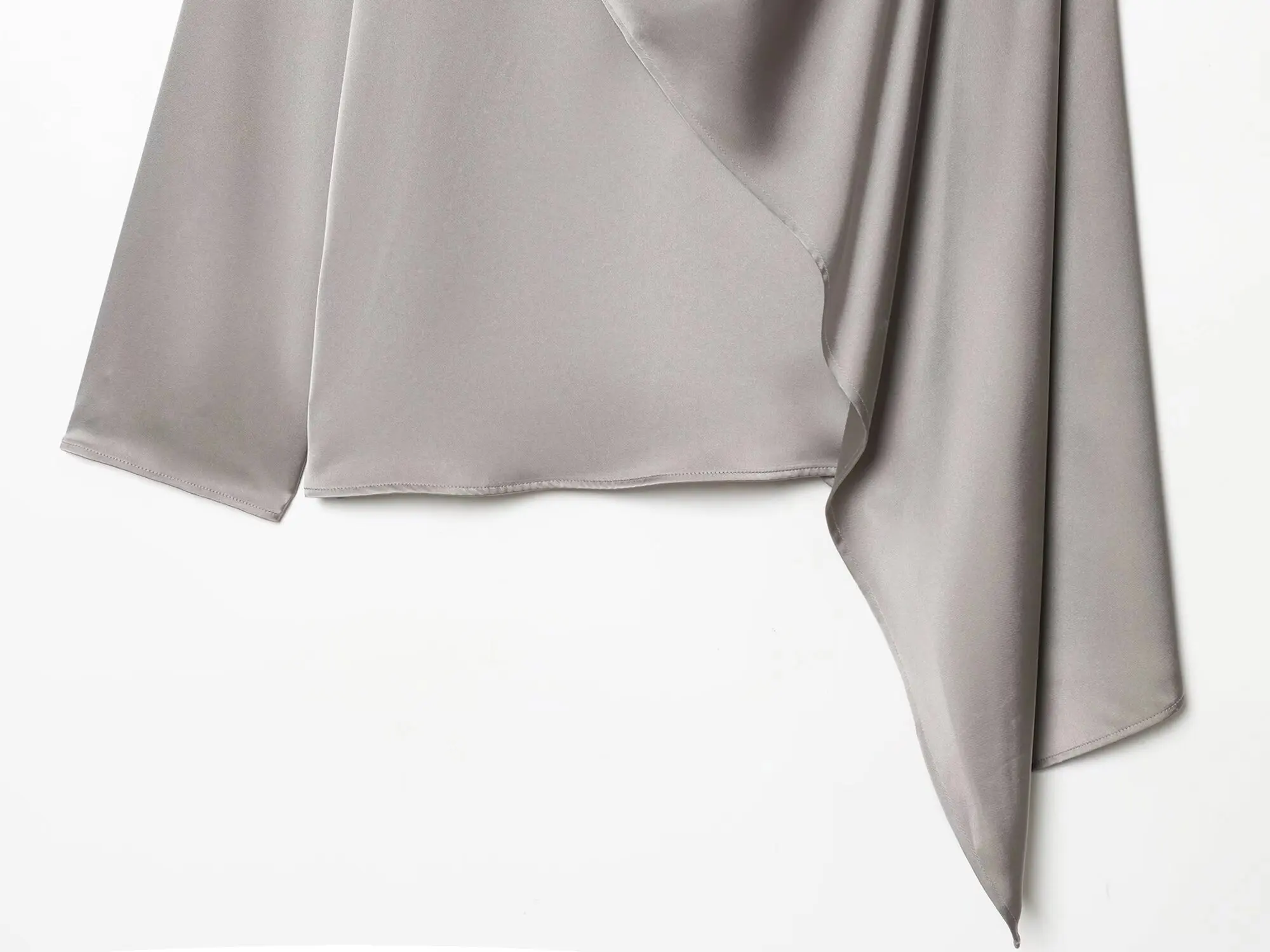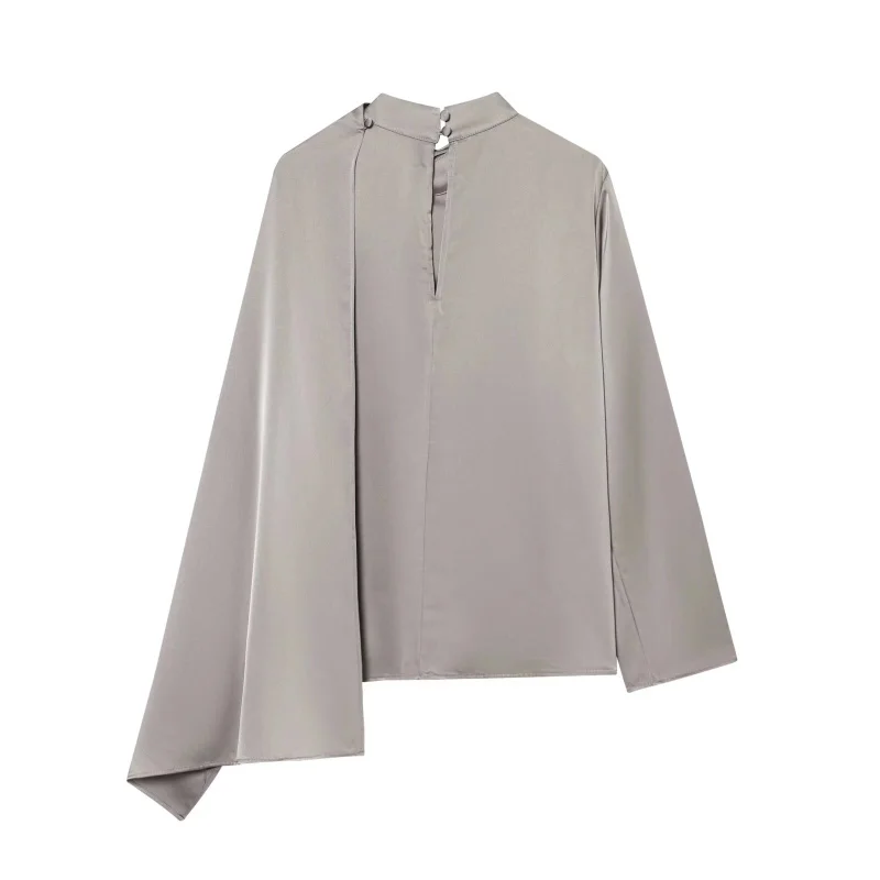 ETJ 2026 Spring new women's elegant fashion shawl design satin drape top asymmetric wrinkled long-sleeved shirt