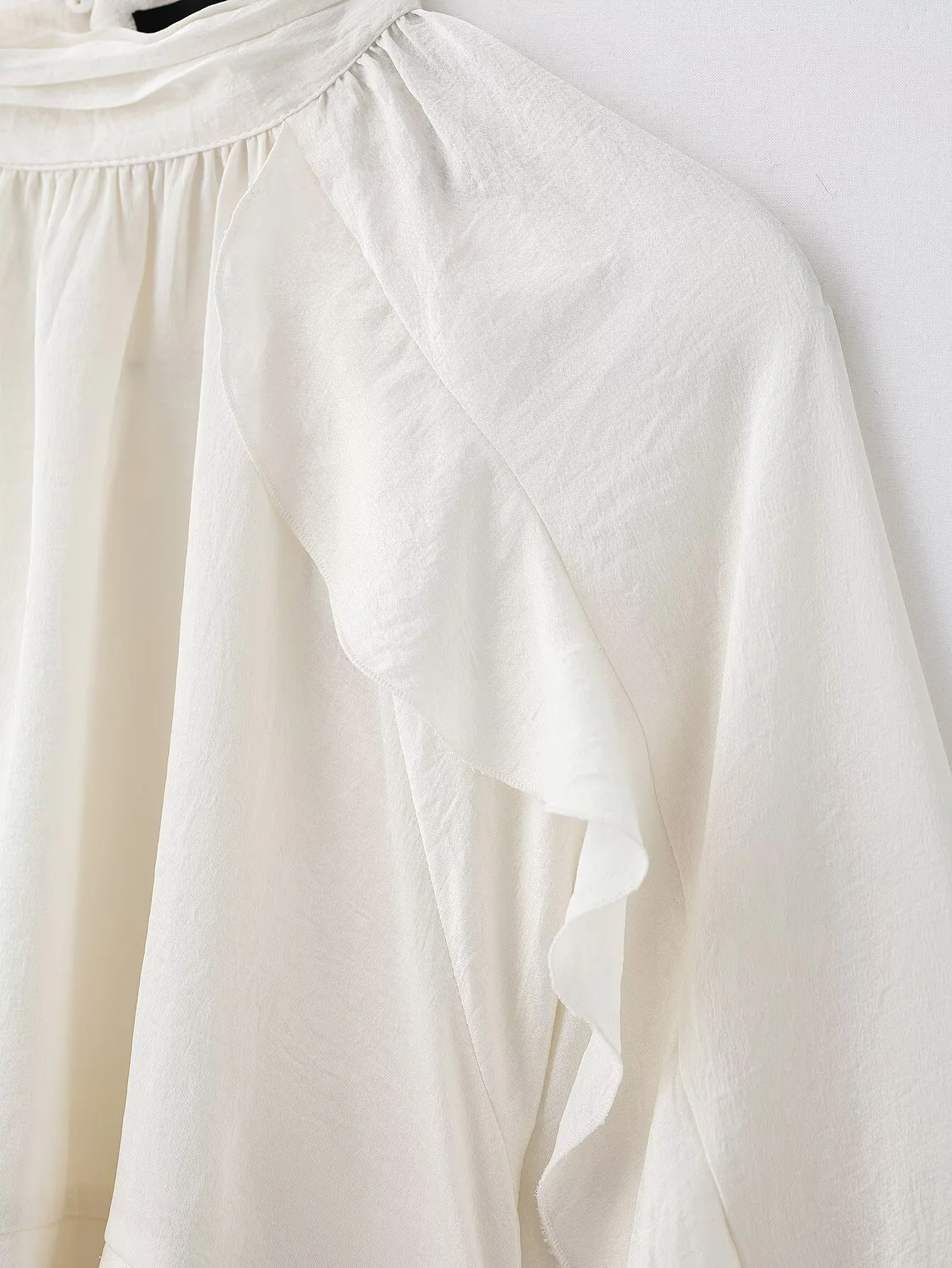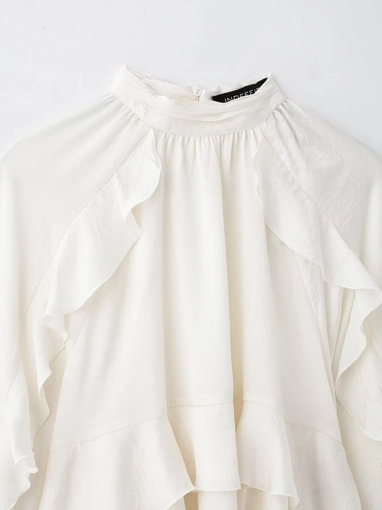Spring And Summer Women's Hot Girl Style Loose Layered Decorative Ruffled Stand Collar Long Sleeve Shirt
