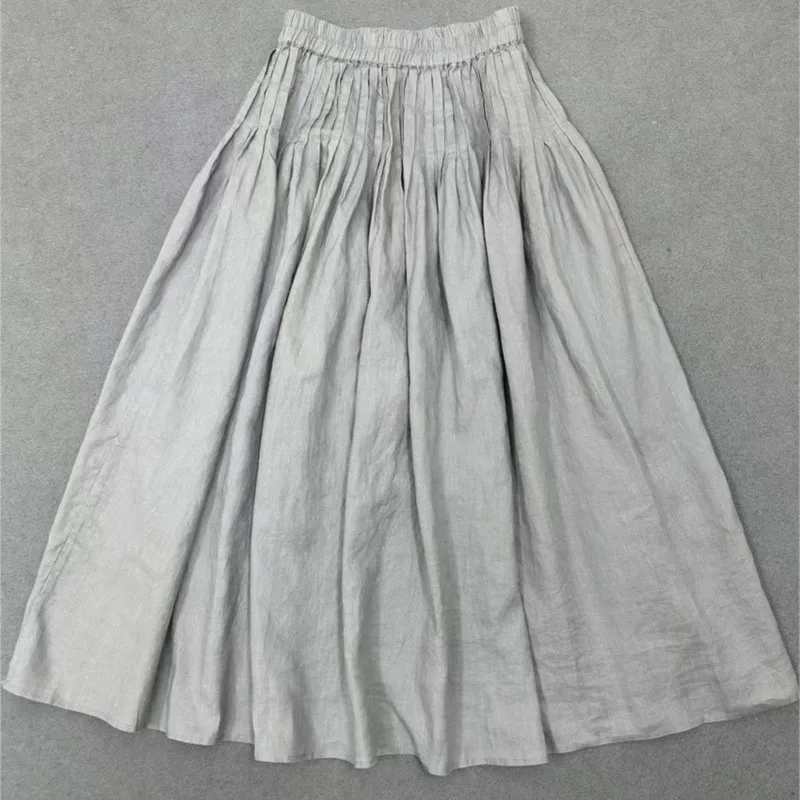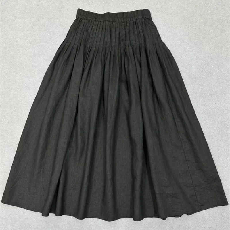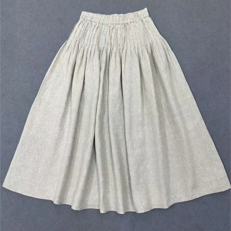 Johnature Japanese Linen Pressed Drawstring Skirts 2025 Spring Summer New Casual Versatile All Match Women Skirts