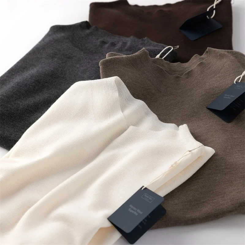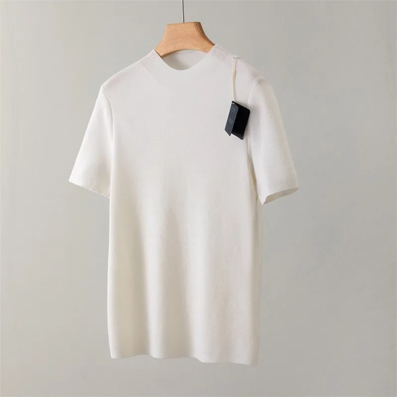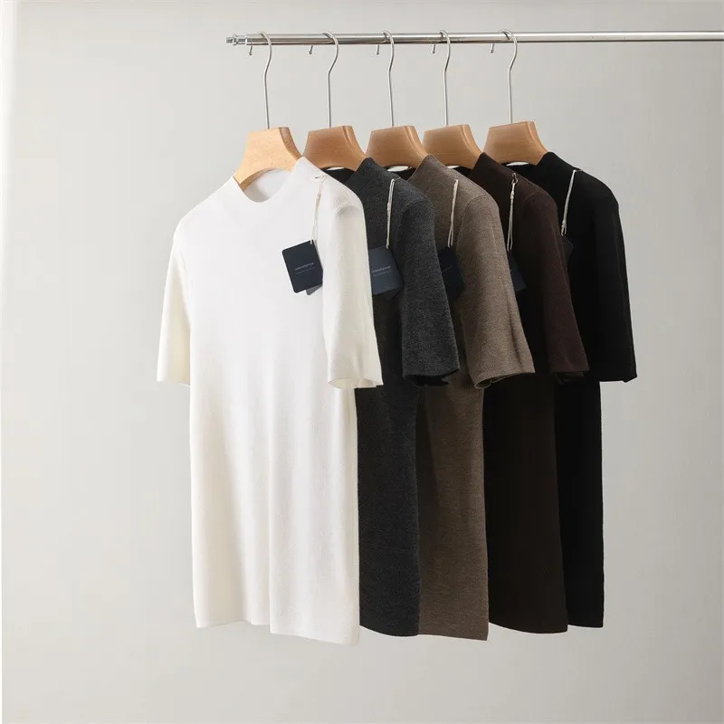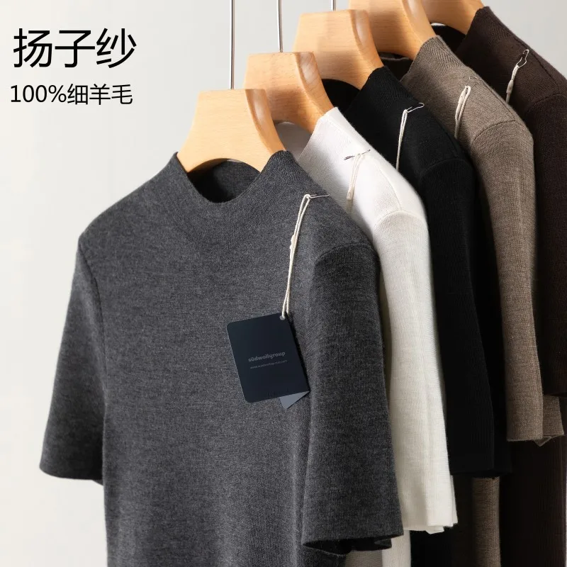 German Yangzi Yarn 100% Superfine Merino Wool Fine-Spun Wool 120's Half-High Collar Knitted Short-Sleeve T-Shirt Base Layer Women's Slim-Fit Thin Sweater for Layering Trendy