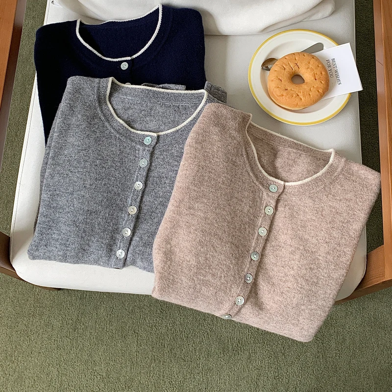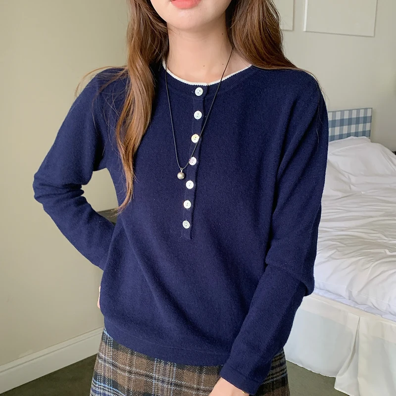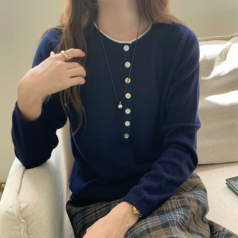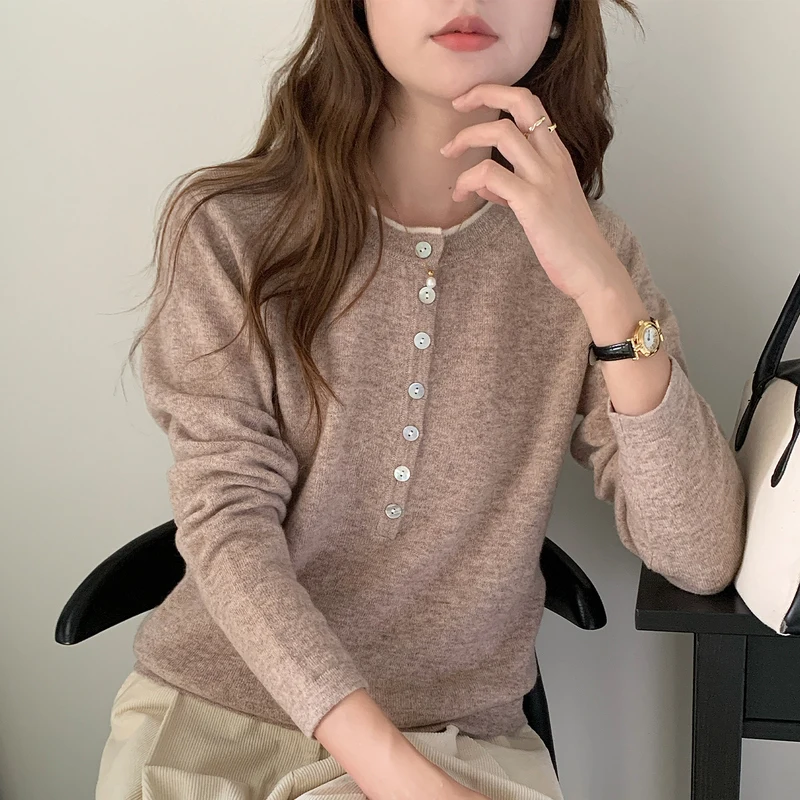 WinvyNee Women's Clothing 100% Wool Sweaters Buttons Long Sleeve O-Neck Double Layer Pullovers Warm Knitted Tops Autumn A1523060