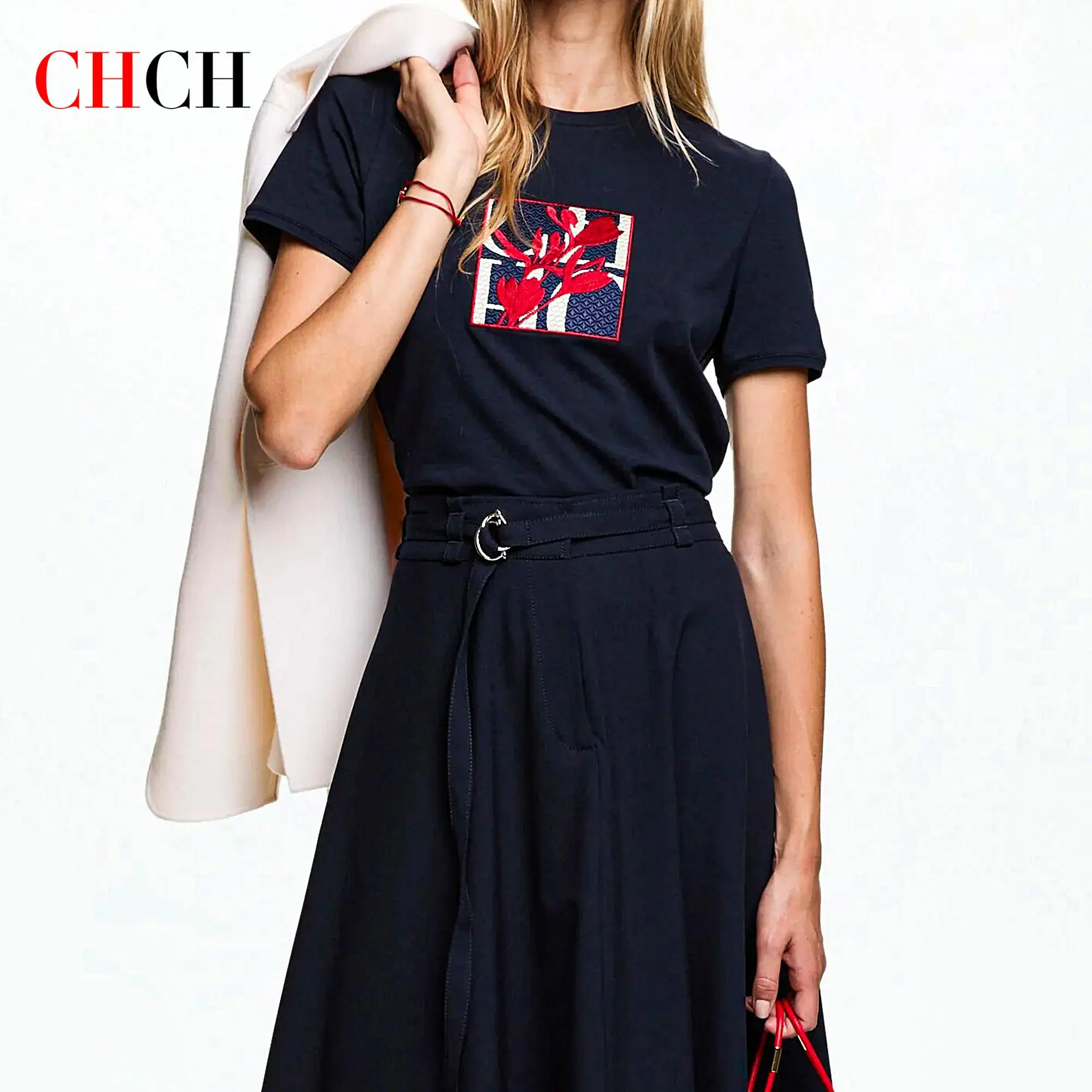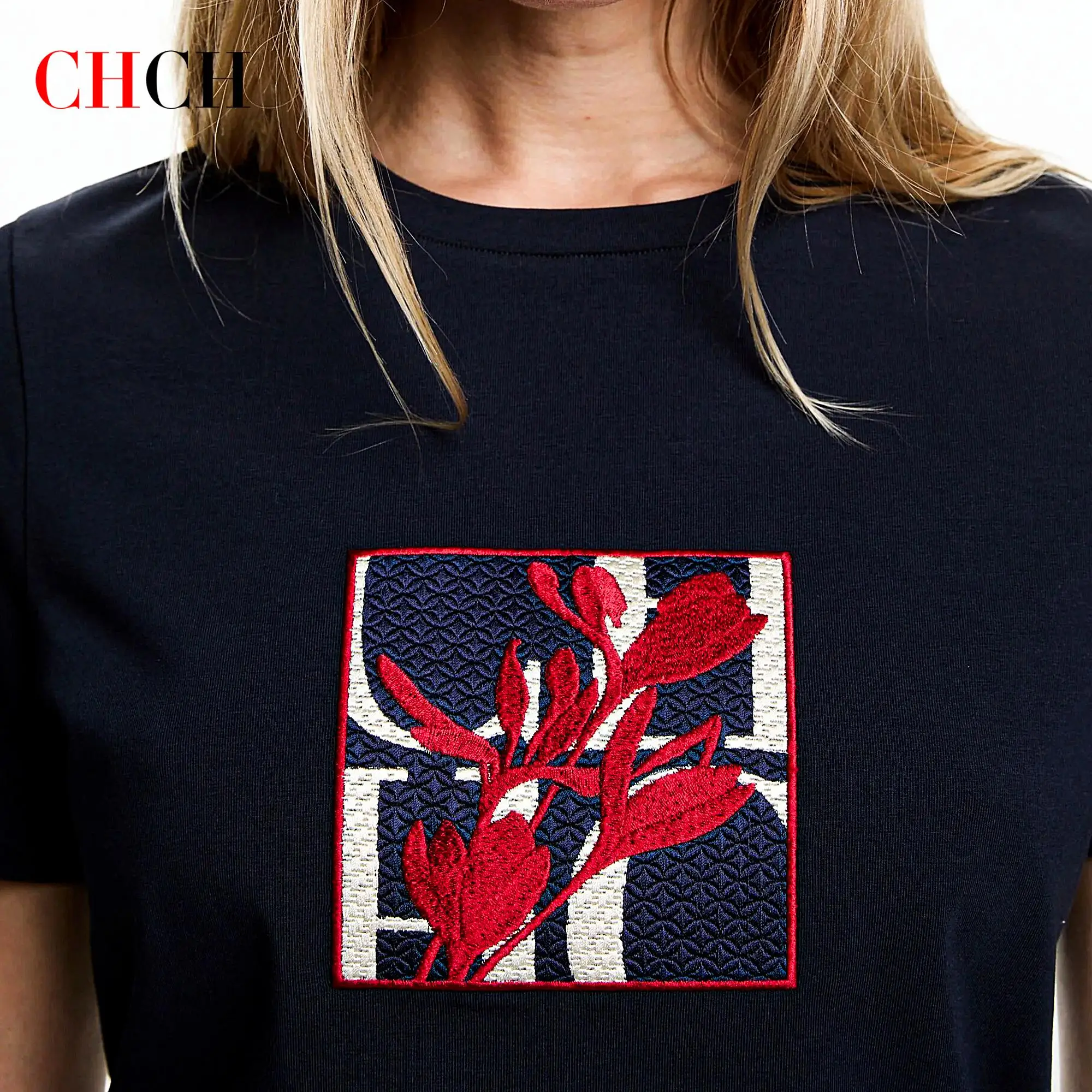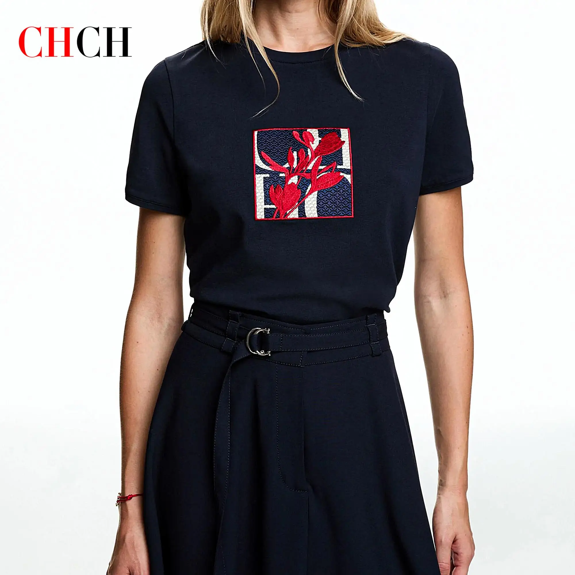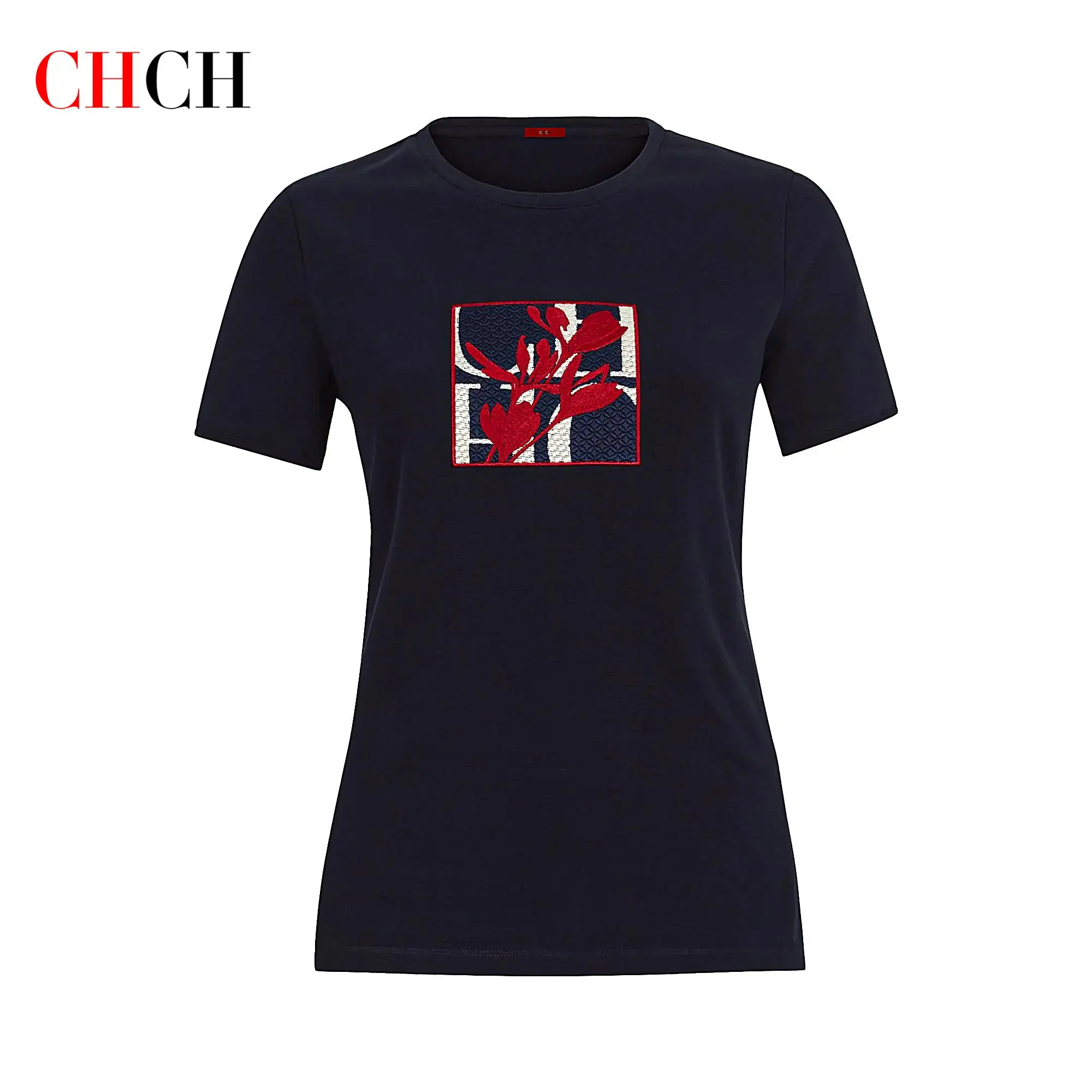 CHCH Unique Embroidery Printing Design Summer New Women's T Shirt Casual Cotton Women's Tops Comfortable Simple