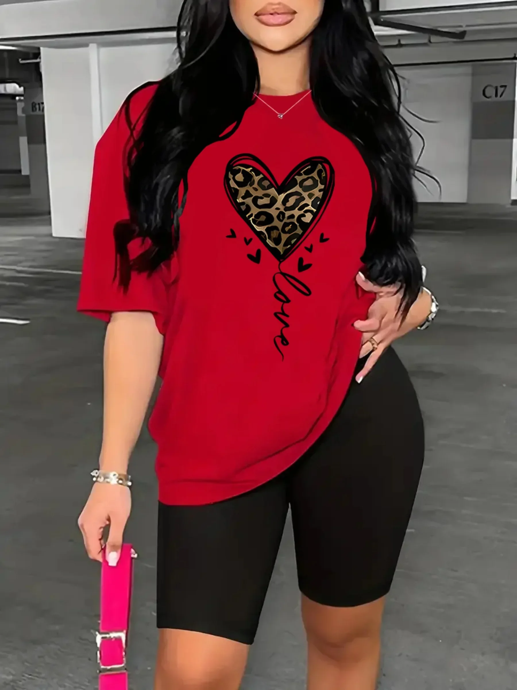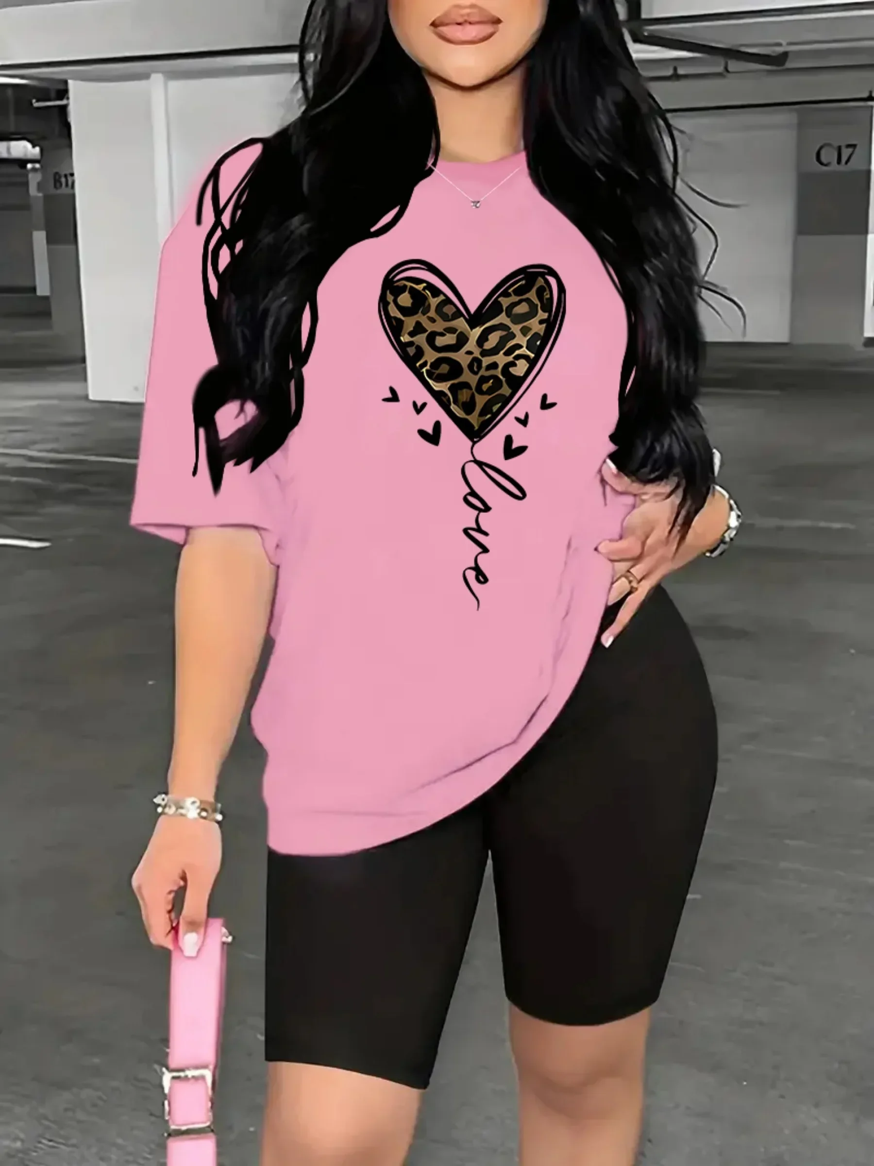 Conjuntos cortos con estampado de amor divertido para mujer moda novedosa transpirable de manga cortaropa de calle H