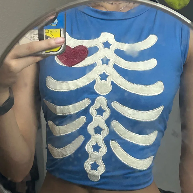 Weird Classic Skull Patchwork Women Tank Tops Sleeveless Pullover Hipsters Hip Hop Streetwear Y2K Causal Basic Wild Comfortable