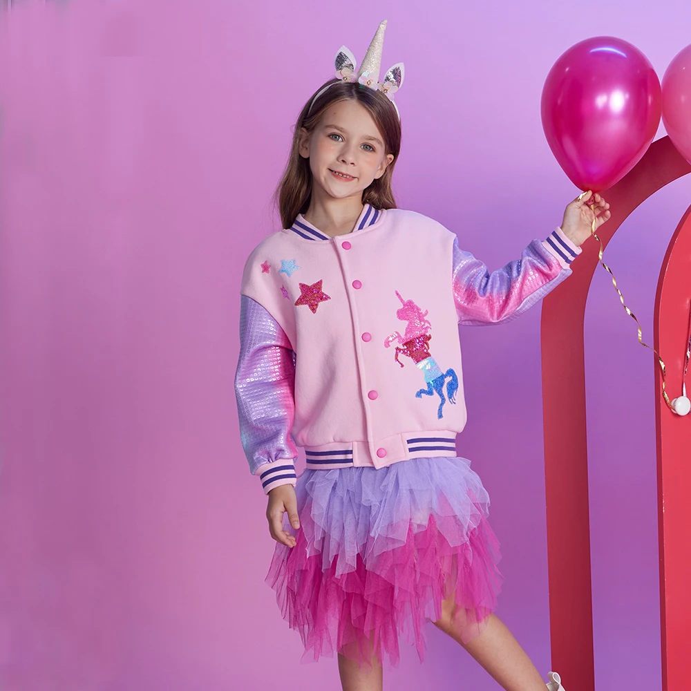 ג'קטים לילדות חורף DXTON יוניקורן חיצוניים כוכב סיקווין קרדיגן ג'קטים מעובה חמים לילדים קטנים מעיל ספורט לנערות