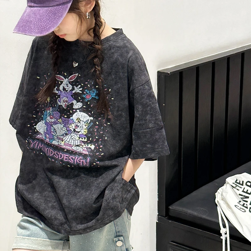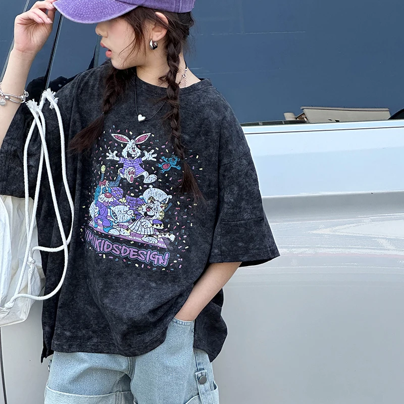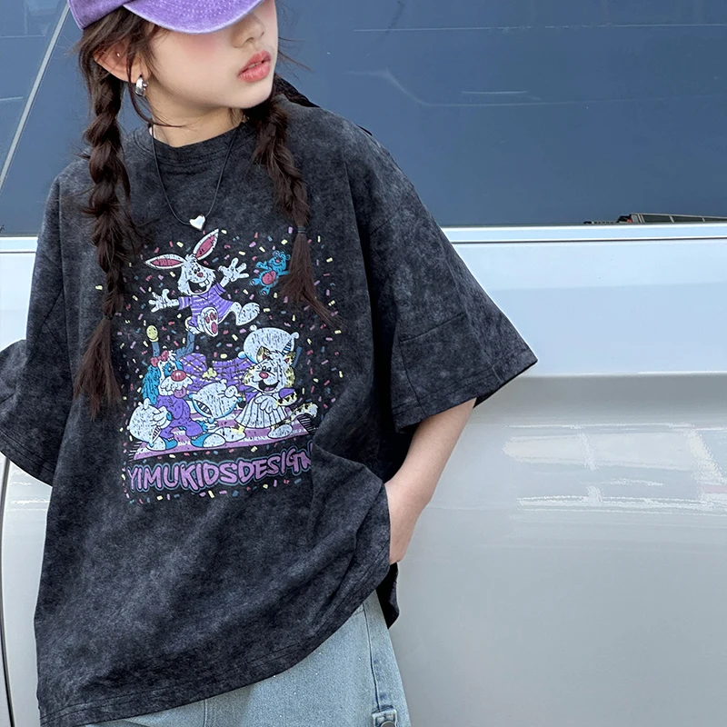 חולצת טריקו לילדות עם חצי שרוולים, אופנתית וטרנדית, משובצת כוכבים, חולצת ילדים של Dailu, בינונית וגדולה, לבנות בחטיבת הביניים