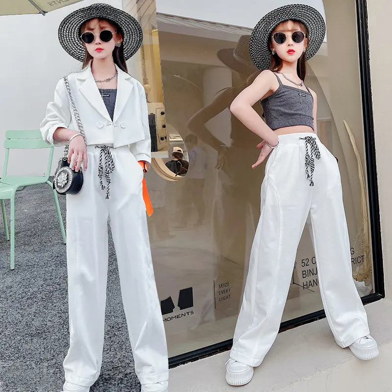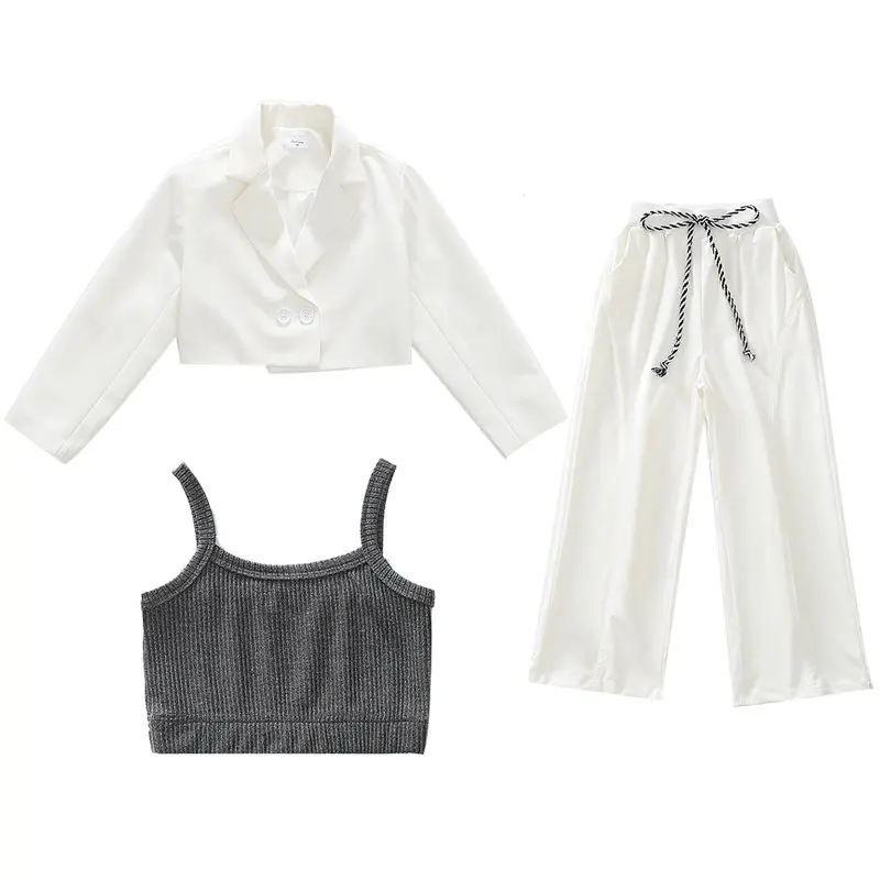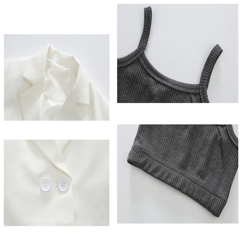 נערות בגדי סט קצר Kinitted יבול למעלה + בלייזר מעיל ומכנסיים 3PCS לבן חליפת סט נקבה פורמליות חברתי ארבע עונות