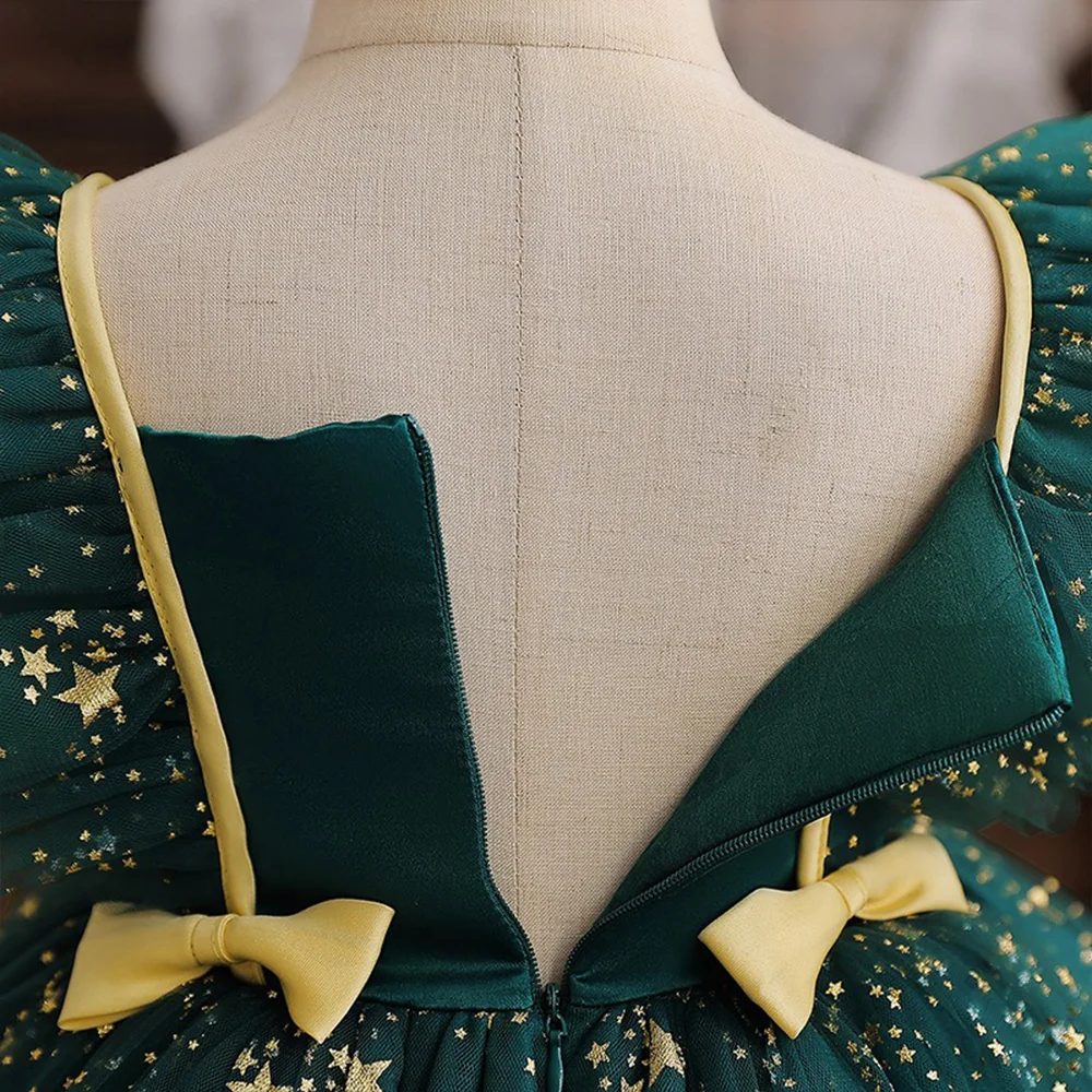 שמלת הנסיכה של הלו קיטי עבור ילדות עם כוכבים מבריקים, קשירת קשת וטוטו, שמלת תינוקות רשמית לגאלה ולמסיבת ערב לילדים
