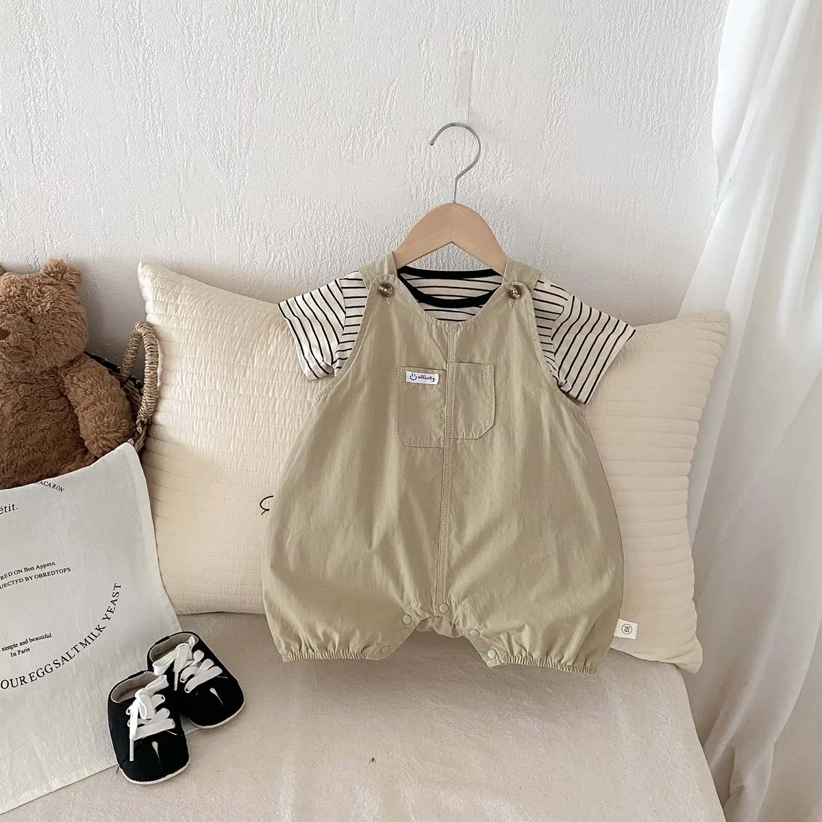 2 יח 'תינוק חליפות תינוק בגדי תינוק לבן שרוולים קצרים פס שרוולים קצרים פס צמרות תינוק עם חליפת שתי קבוצות 0-שנתיים