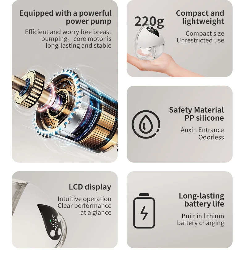 משאבת חלב חשמלית אלחוטית ללא ידיים, ללא BPA, 4 מצבים, 12 רמות מתכווננות, שקטה, בלתי נראית, לבישה, מחלבת חלב אם
