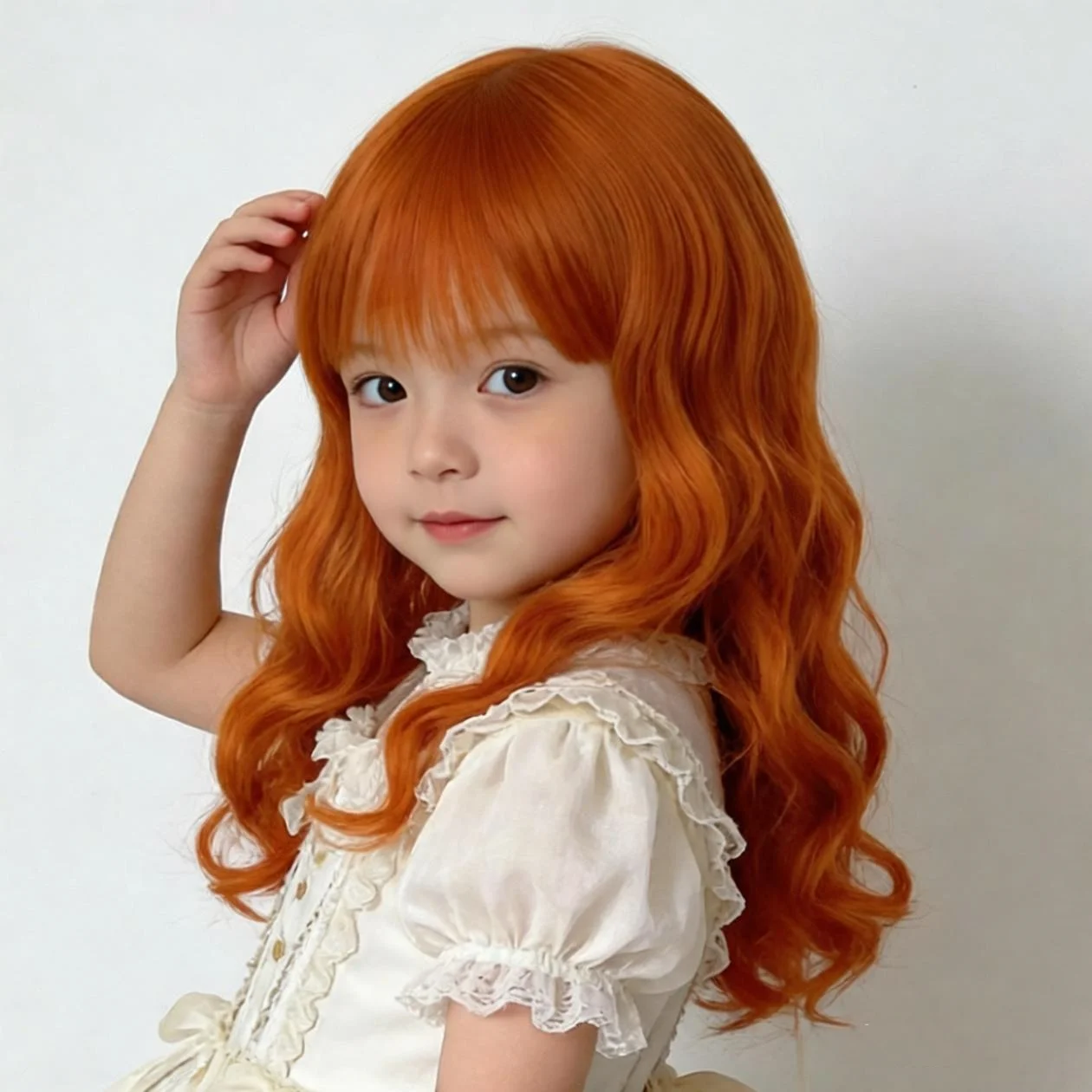 פאת ילדה כתומה שיער ארוך מתולתל אבזרי צילום לילדים כיסוי ראש לנוער כיסוי ראש לתינוקות כיסוי ראש לתינוק 2Y