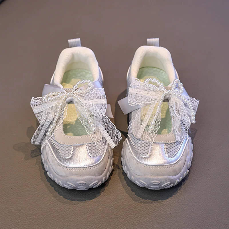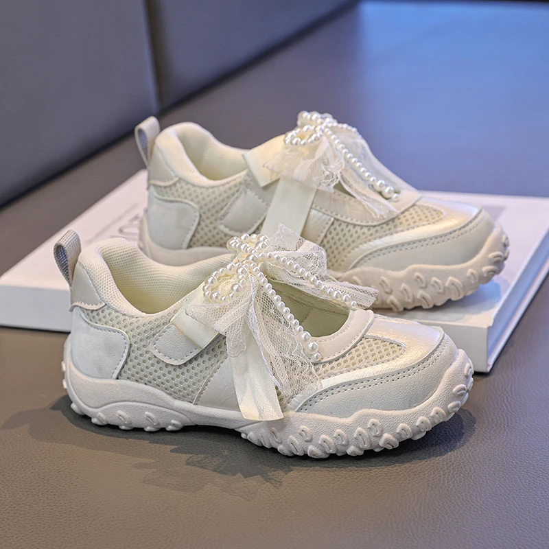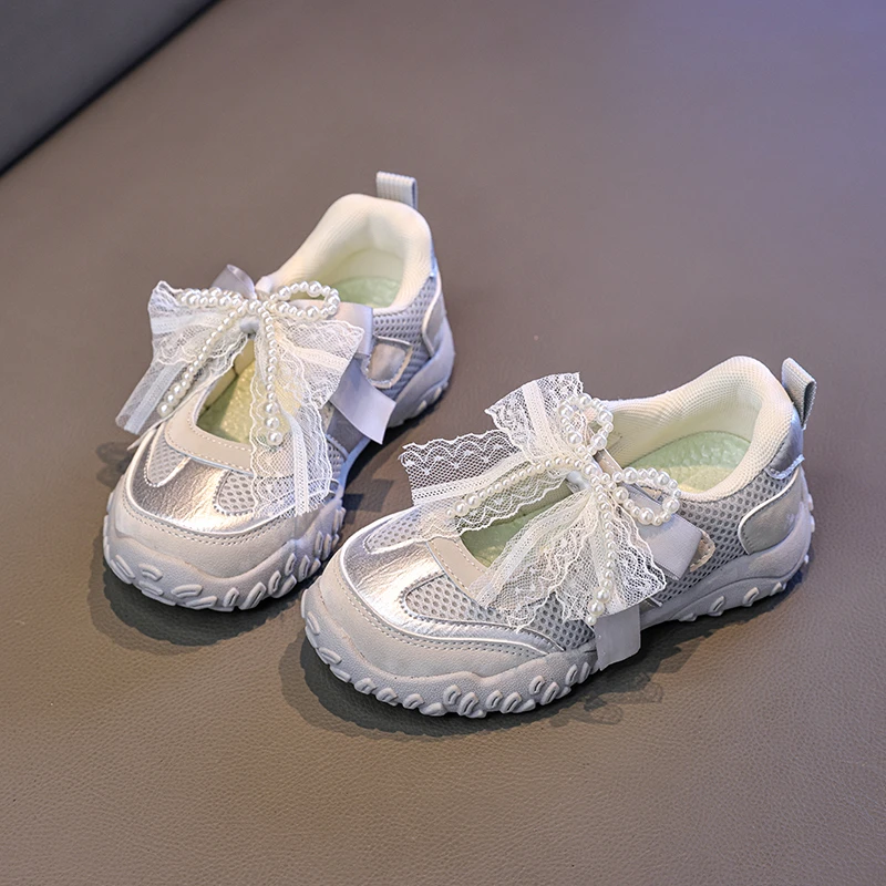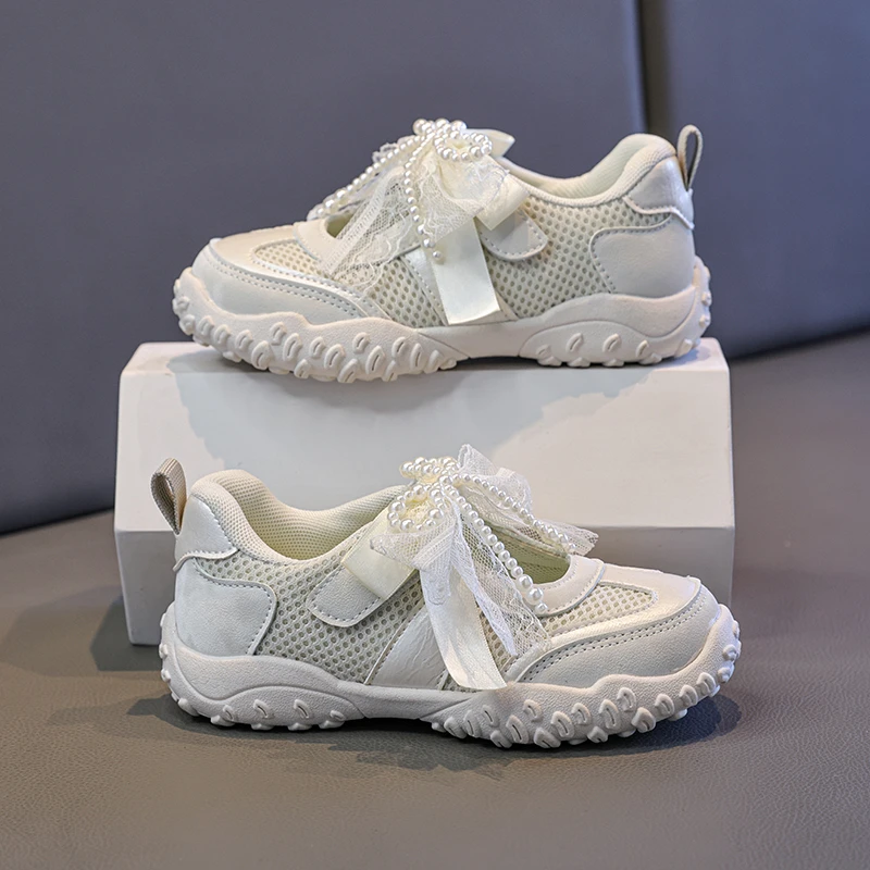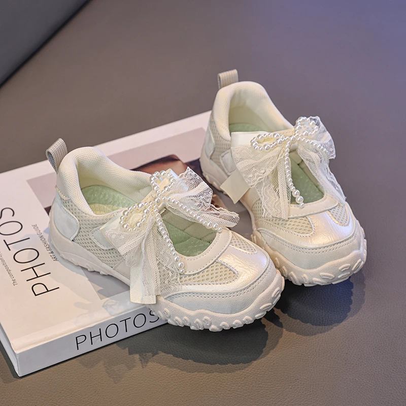 נעלי ספורט קיץ 2026 לילדות, נעלי מרי ג'יין עם שרוכי פנינים, שטוחות, קלות משקל, נגד החלקה, סנדלי ריצה לילדים לחזרה לבית הספר