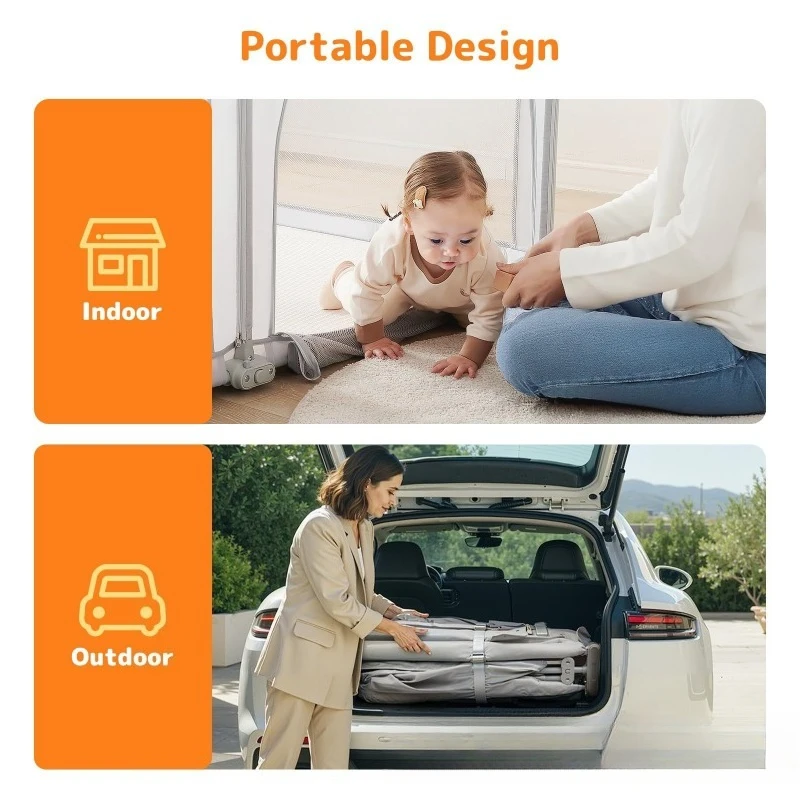 גדר בטיחות מתקפלת לילדים - אין כלי עבודה להרכבה של גן משחקים לפעוטות, מחסום לתינוקות בפנים / בחוץ עם התקנה קלה