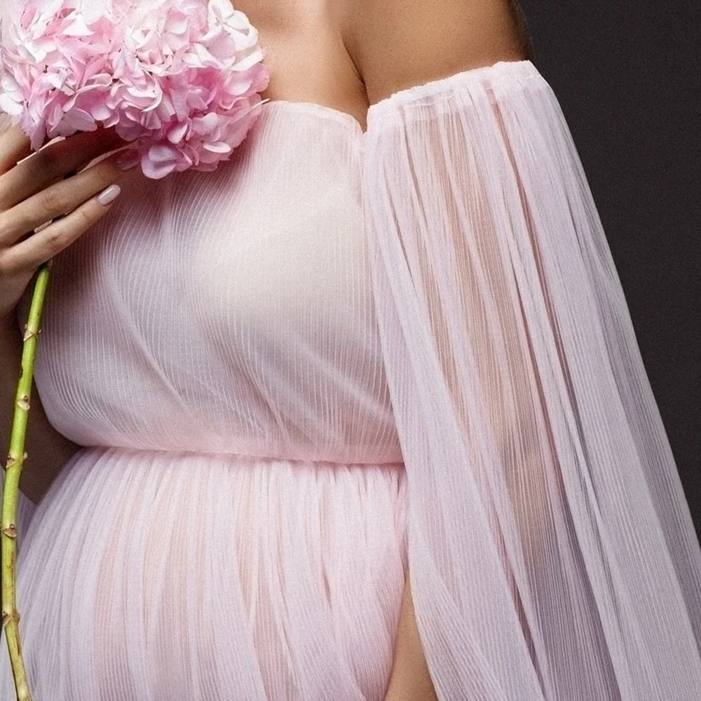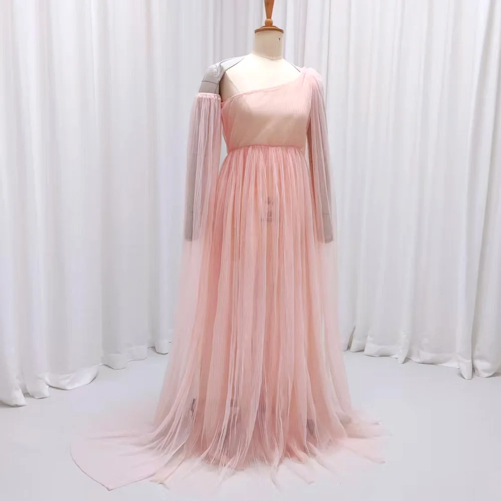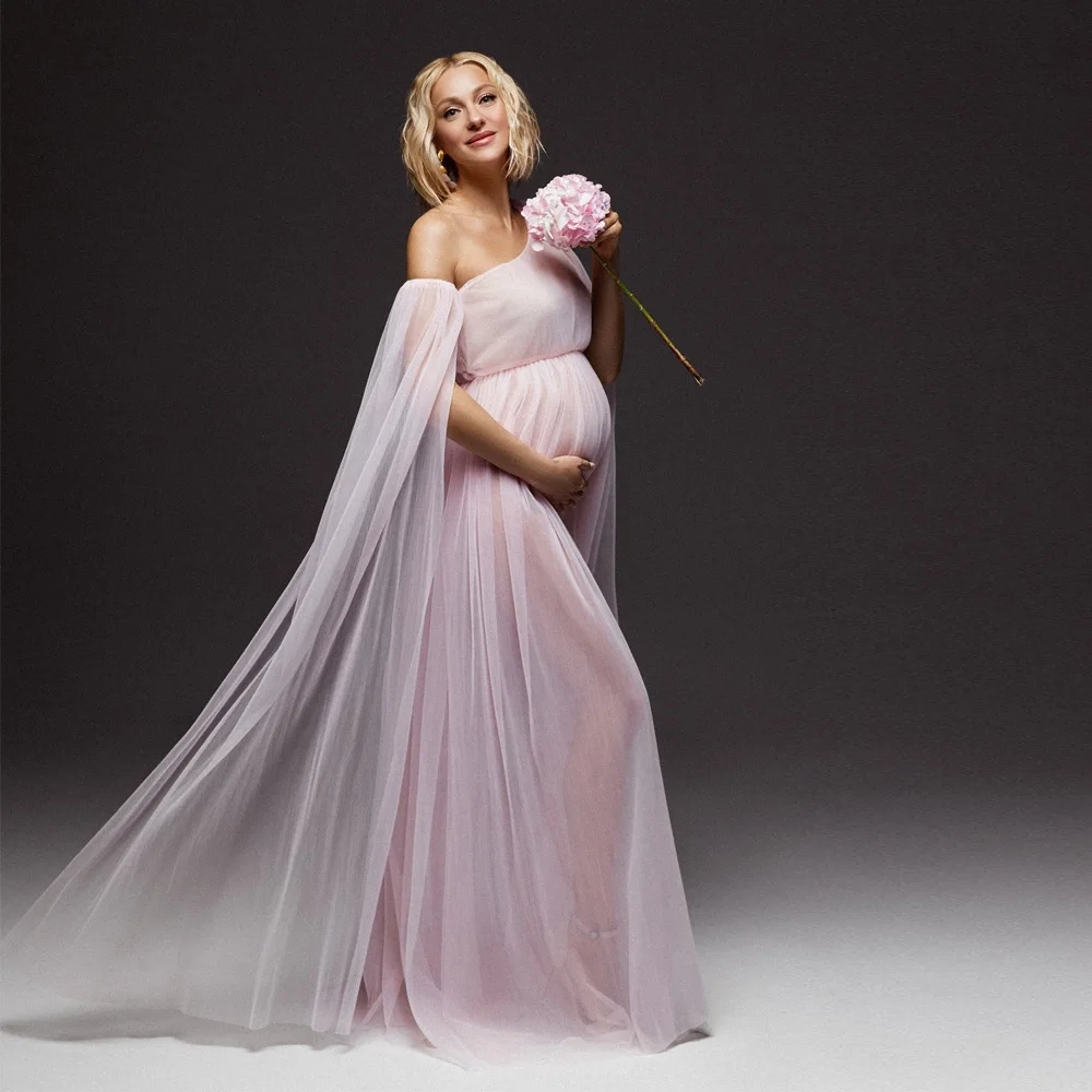 שמלת מימושה לצילום שמלת כתף אחת מפולייסטר עם רשת לנשים בהריון