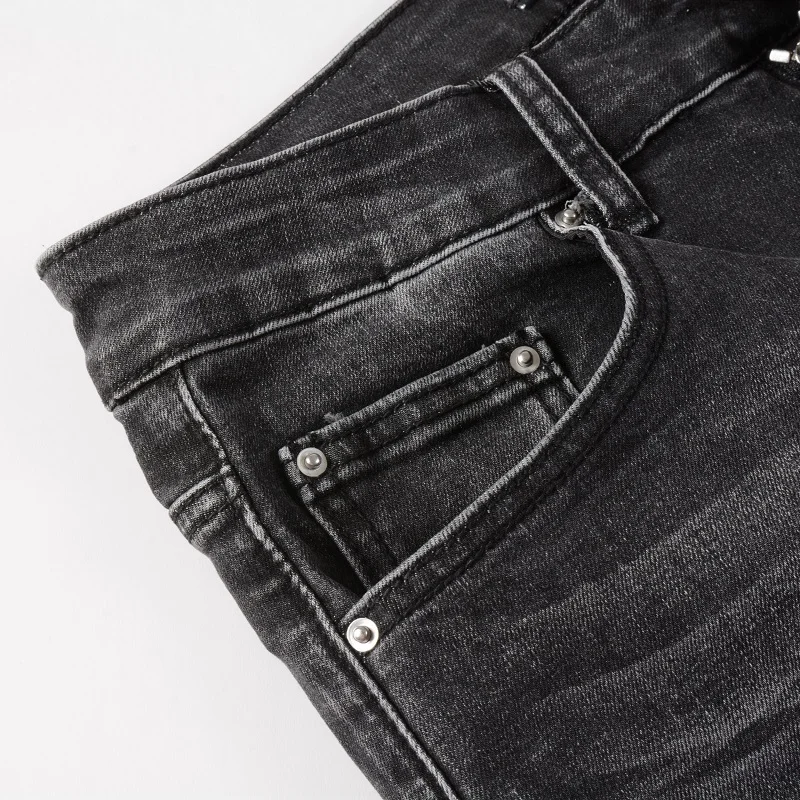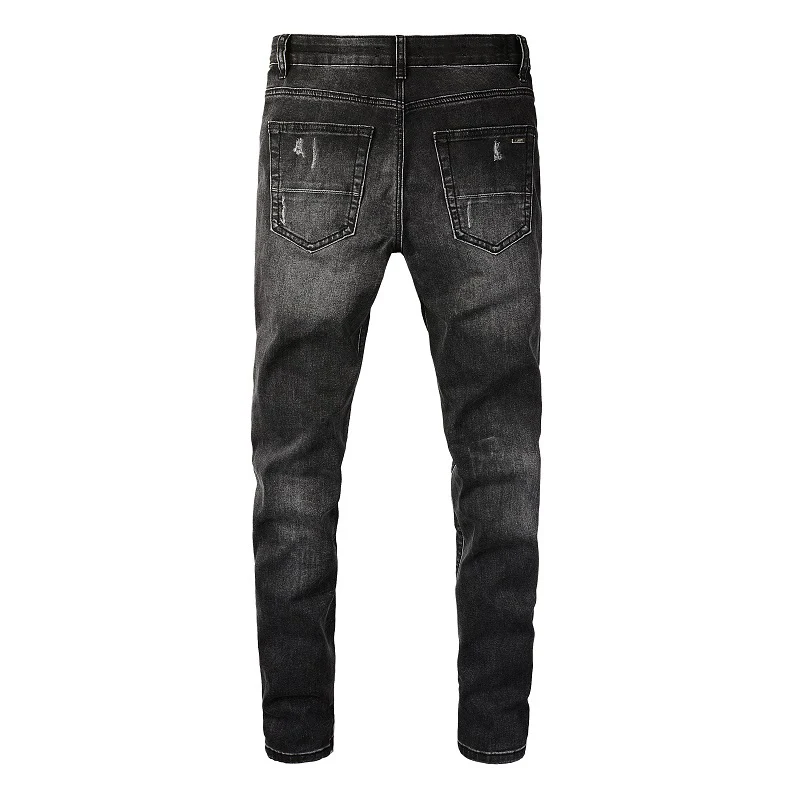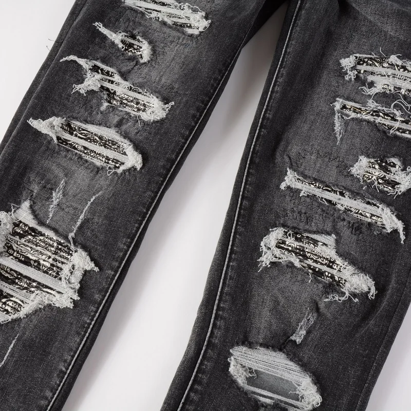 גברים של סדוק בנדנה תיקון ג 'ינס Streetwear פייזלי מודפס קפלים טלאים Biker מכנסיים סקיני Tapered למתוח ג' ינס מכנסיים