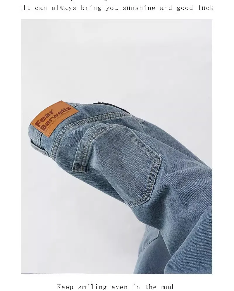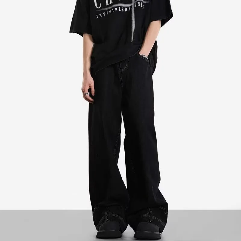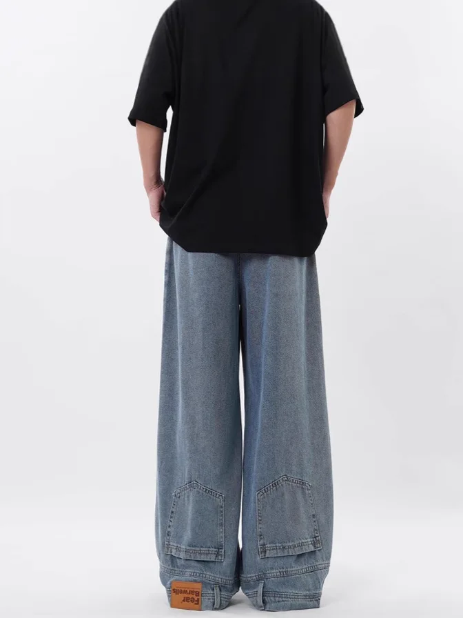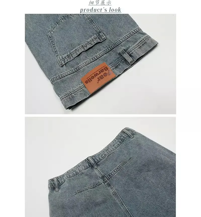 וינטג' אמריקאי High Street Reverse Jeans לגברים מכנסי ג'ינס בגזרה רופפת מכנסיים קז'ואל בגדי רחוב מכנסיים לזוג אופנה ללבוש יומיומי