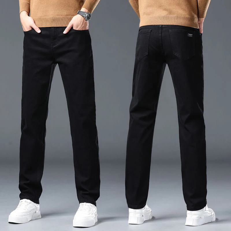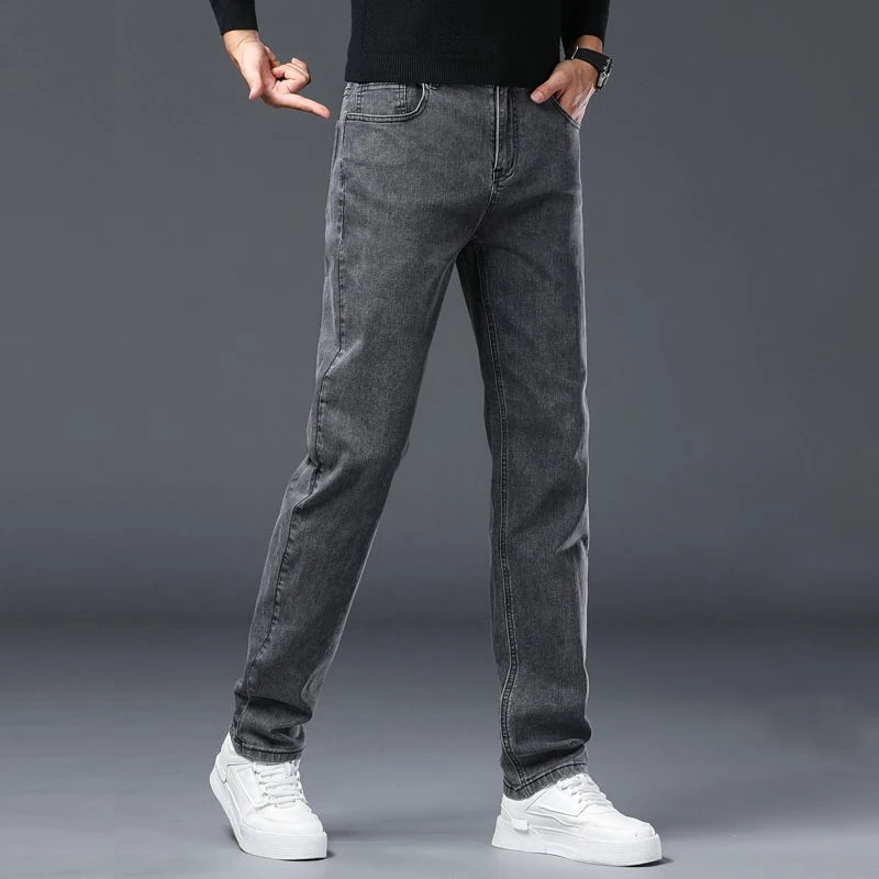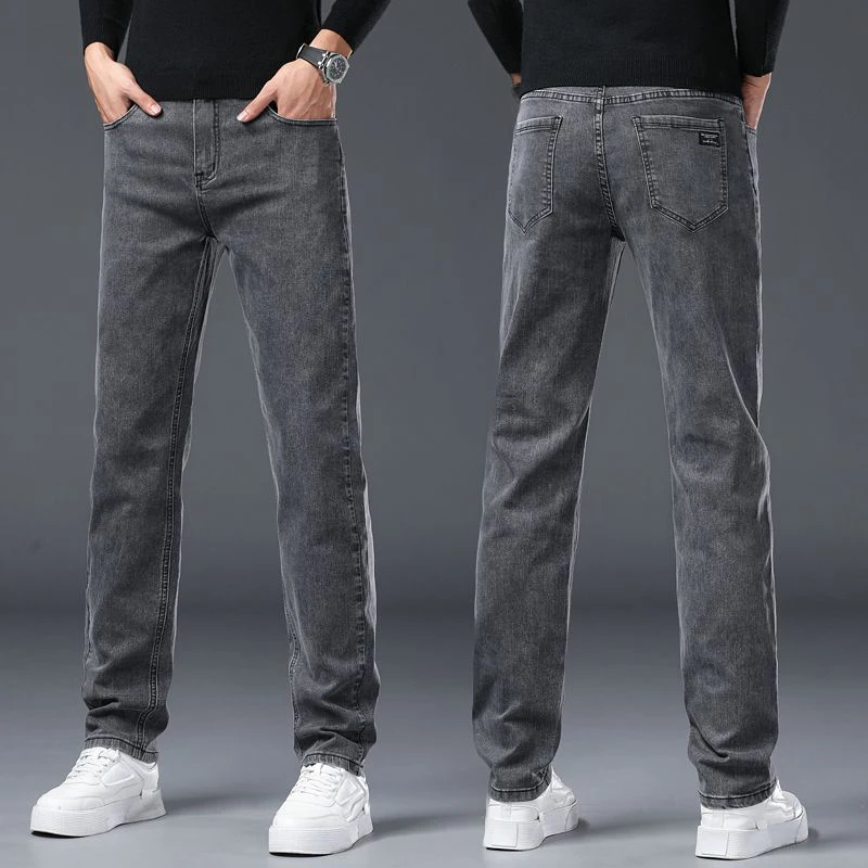 מכנסי ג'ינס צרים לגברים בסגנון קוריאני, מתאימים לעבודה ולשימוש יומיומי, בצבעים שחור ואפור