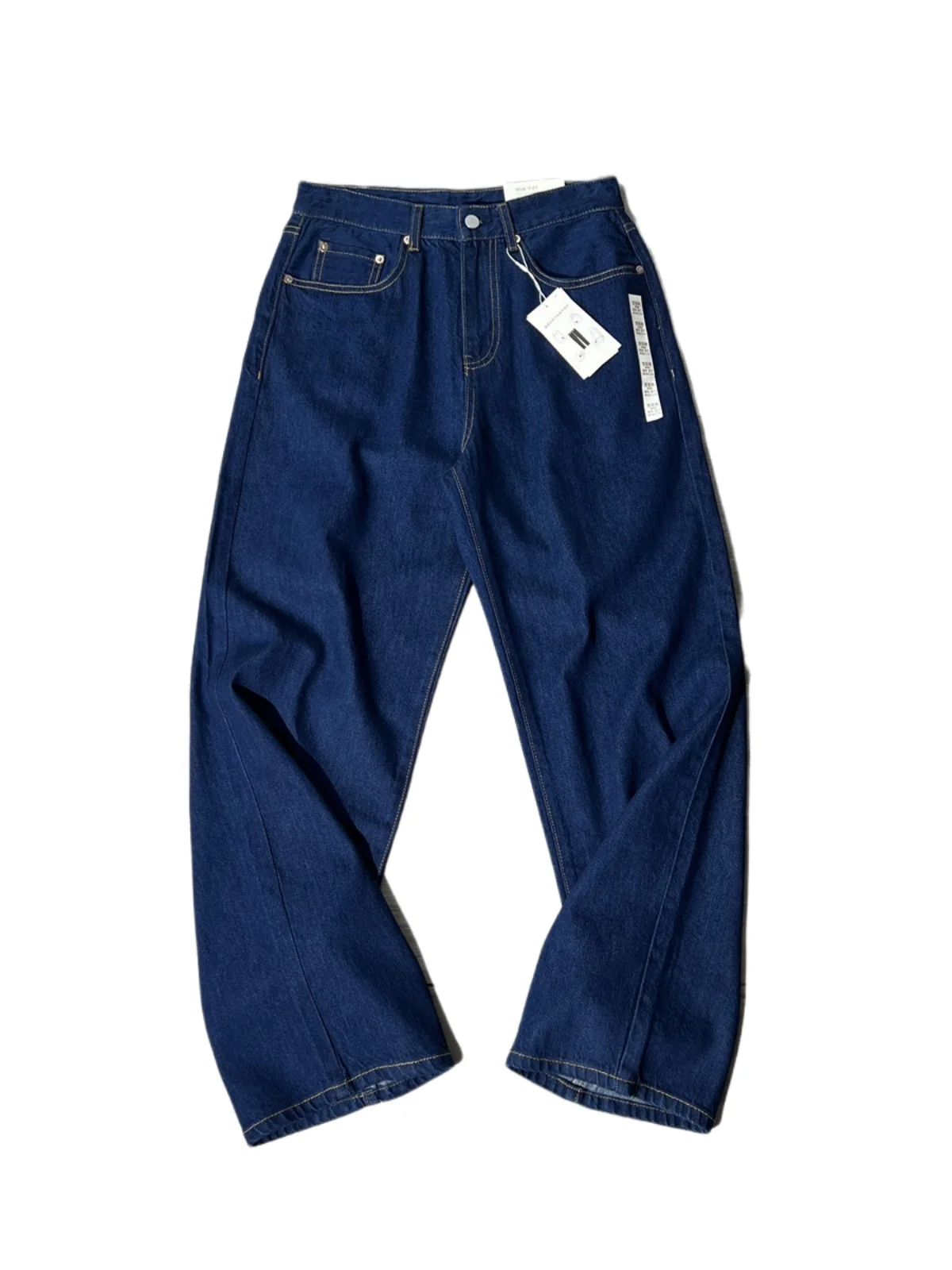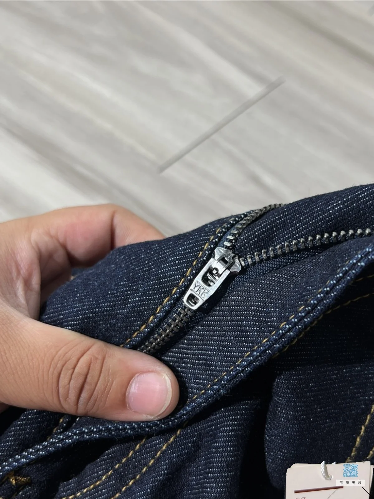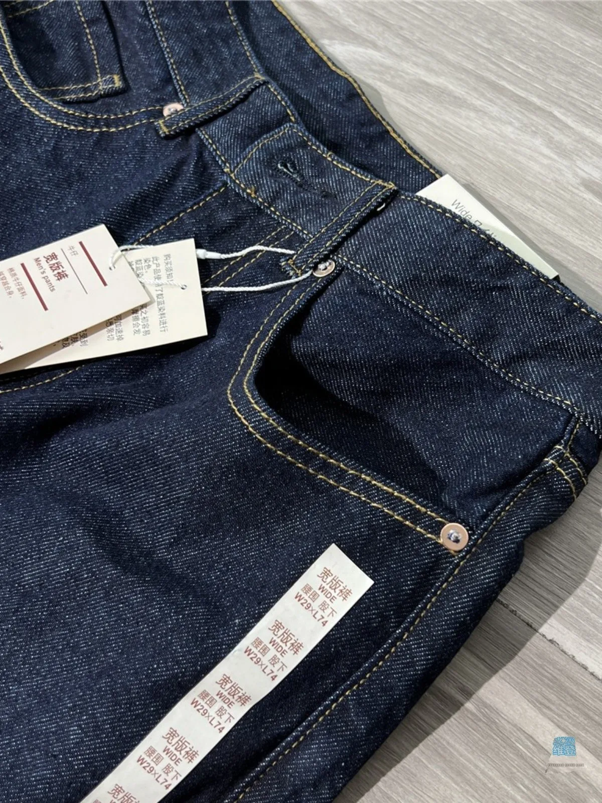מכנסי ג'ינס קלאסיים לגברים עם רגליים ישרות מכנסי כותנה ג'ינס בגזרה רופפת ארבע עונות בסגנון רטרו בסגנון יפני מכנסיים ארוכים