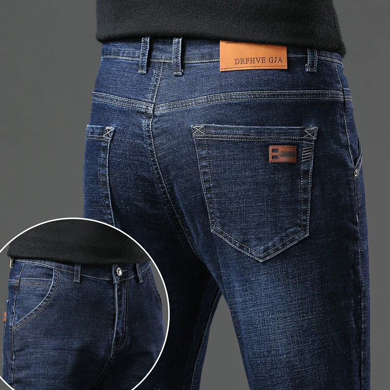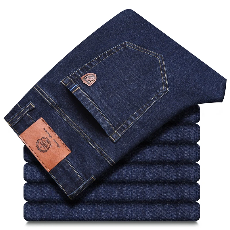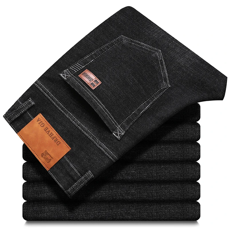 2026 ג'ינס חדש לגברים בסגנון קלאסי לעסקים קז'ואל מתקדם מתיחה מתקדמת מכנסי ג'ינס בגזרה רגילה מכנסיים שחורים כחולים מכנסיים גברים מידה 30-40