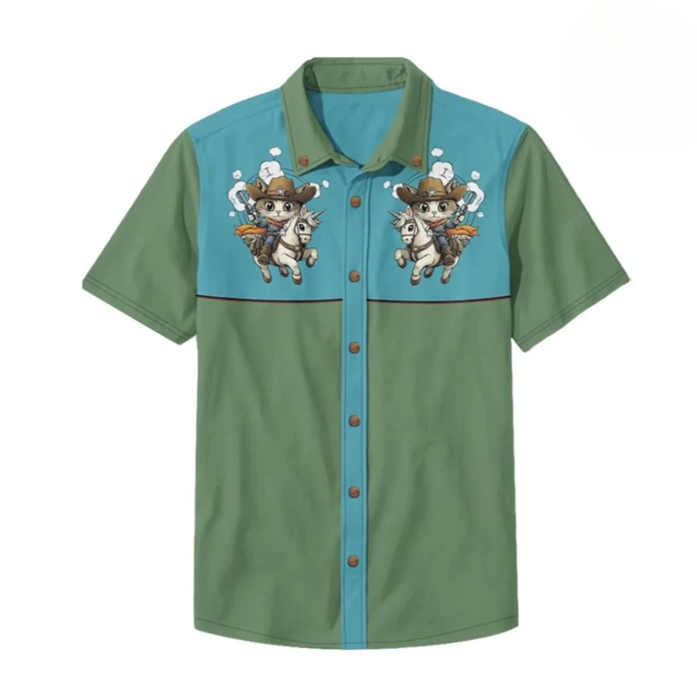 חולצות כותנה עם הדפס קאובקט רטרו לגברים בסגנון רחוב וינטאג' הראג'וקו חולצות קיץ